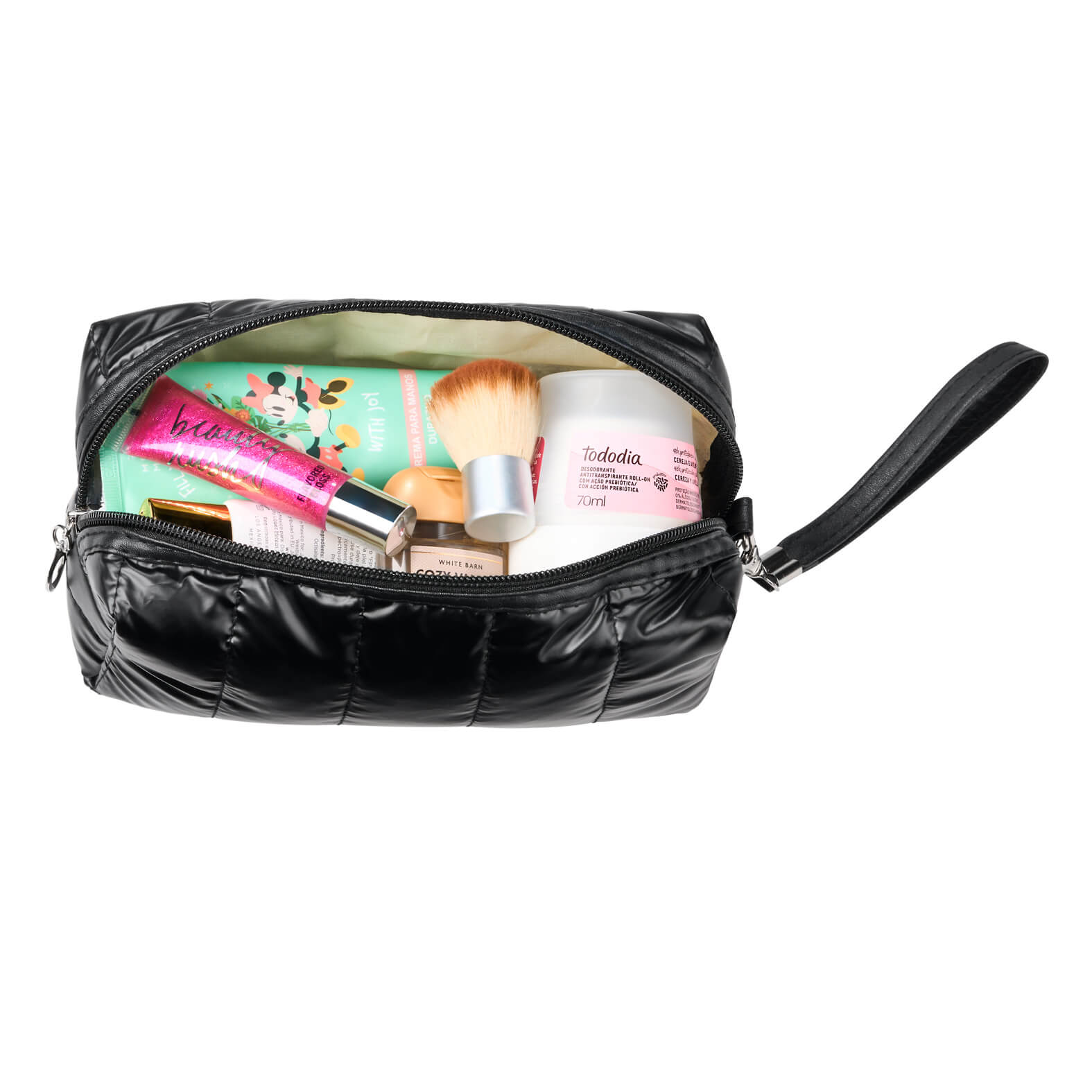KIMY Cosmetiquera con interior forrado, placa, cierre y correa.