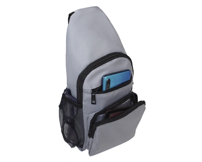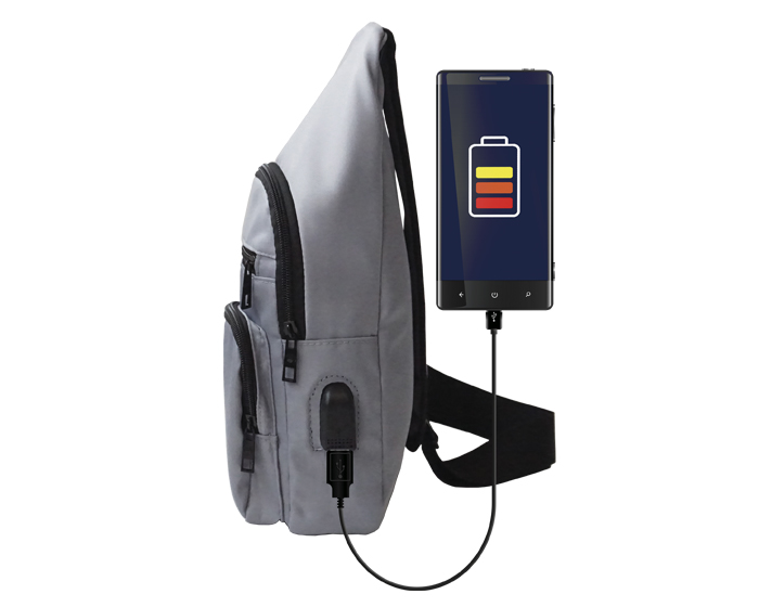 BELLAKO - Pechera impermeable con correa acolchada ajustable, bolsa de malla lateral con resorte, entrada de carga puerto USB, bolsa frontal, bolsa superior y bolsa principal con compartimento interno par guardar accesorios. (Cada bolsa con cierre). Incluye cable para carga.