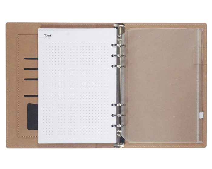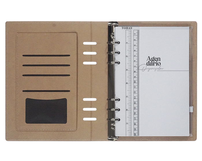HILTON - Carpeta tipo agendario organizador de pasta rígida de 6 arillos de metal, su cubierta cuenta en la parte interna con 4 compartimentos para credenciales, uno con ventana plástica, sujetador para bolígrafo. Contiene: Hoja de dedicatoria, hoja de datos de contacto, calendarios del 2025 al 2028, planificadores anuales (4), planificadores de gastos (4), planificadores de proyectos (5), hojas rayadas y hojas punteadas para notas. Incluye: regla de 20 cm, bolsa de PVC con cierre a presión y bolígrafo de aluminio acabado brillante con detalles en cromo. Puedes adquirir el repuesto Parker en tinta azul para este bolígrafo. Presentación: Caja en color negro.