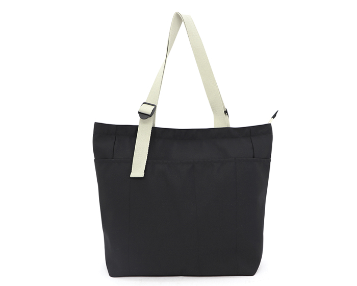 OLIVO - Bolsa de poliéster con cierre central, forro interior y bolsillo interno pequeño con cierre. La parte exterior cuenta con un compartimento frontal y 2 laterales, tiene 2 asas de algodón con broche ajustable, del mismo color de los cierres.