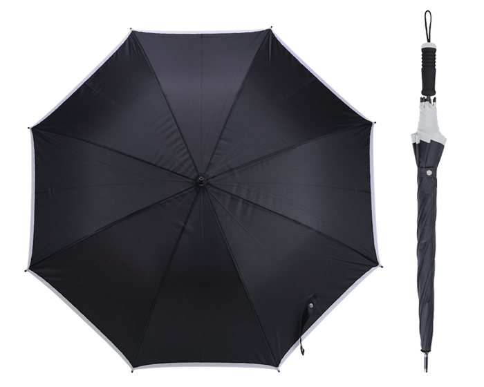 ANNY - Paraguas de 8 gajos con botón de apertura automático, varillas y eje de fibra de vidrio. Cuenta con cintillo para guardar, orilla de color en los gajos, mango EVA con punta de color y cordón para transportar.