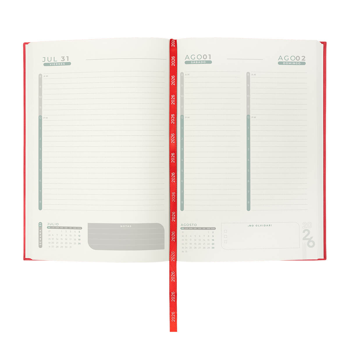 AGENDA DIARIA TERRA 2026 - Agenda diaria con 186 hojas. Contiene datos personales, calendarios 2025-2026-2027, planeador 2026, seguimiento de nuevos hábitos, organizador de tareas, planeador de proyectos y días festivos. Incluye caja individual del mismo color a la agenda.