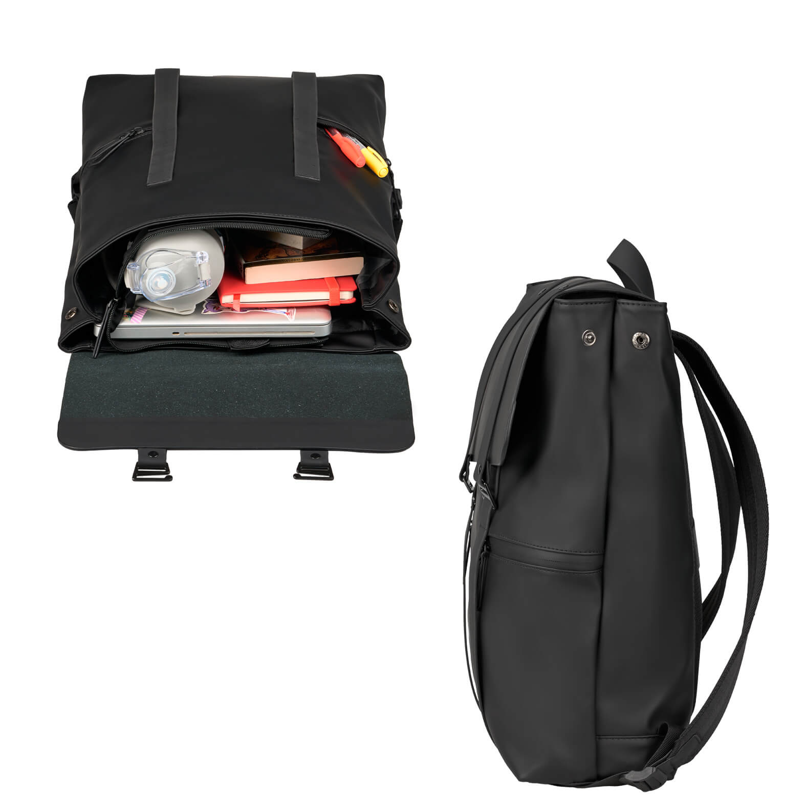 CAO Mochila con compartimento principal que cuenta con organizadores internos, compartimento trasero para porta laptop de 17.5", cierres de broche en los costados, dos compartimentos frontales, respaldo acolchado con banda carry-on y tirantes ajustables.