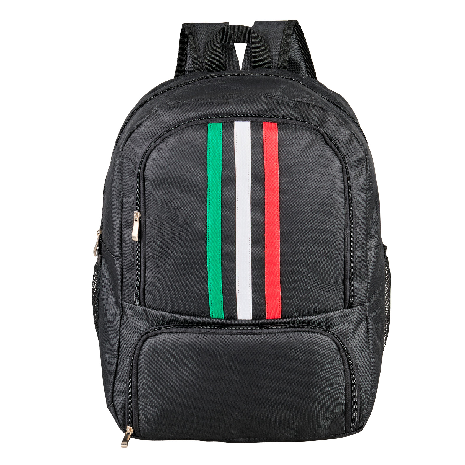 RIVALDO Mochila de poliéster con compartimento principal forrado, acceso rápido frontal, compartimento secundario en la parte baja, respaldo acolchado, tirantes ajustables, mallas laterales y asa superior.
