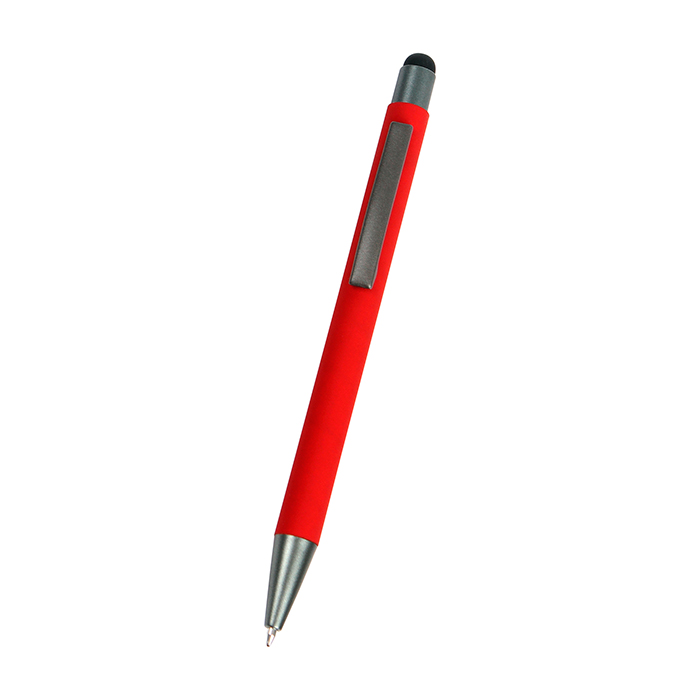 Bolígrafo en aluminio Estambul. - Bolígrafo fabricado en aluminio con cubierta Rubber, un material ligero y duradero que le confiere una apariencia moderna y resistente a largo plazo. Cuenta con una función touch, en la parte superior del bolígrafo como un puntero para dispositivos electrónicos de pantalla táctil. Utiliza tinta de escritura negra.