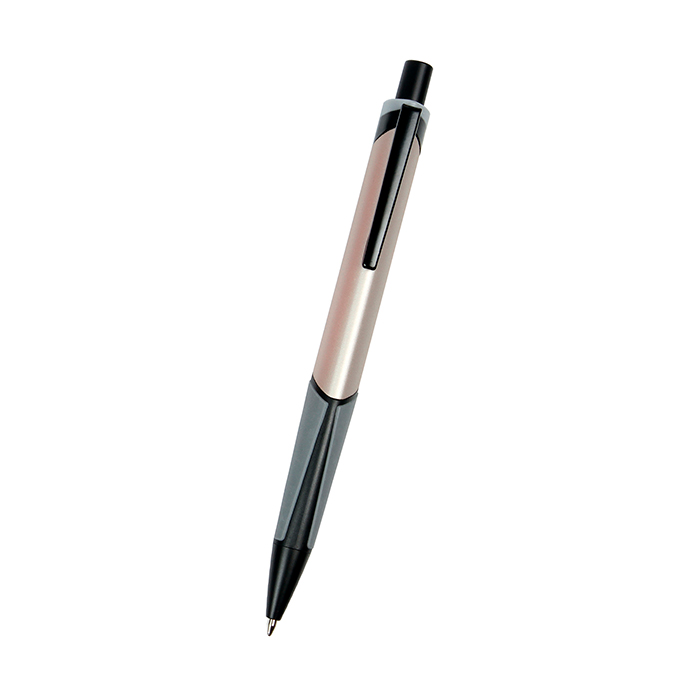 Bolígrafo en aluminio Mersin. - Bolígrafo retráctil fabricado en aluminio con forma triangular y grip tipo goma, tinta de escritura negra.