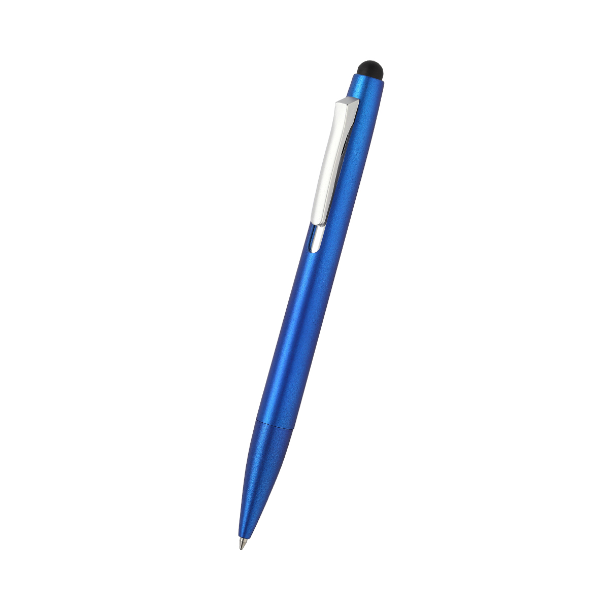 Bolígrafo Lindi. - Bolígrafo fabricado en plástico ABS con apariencia metálica, clip en color plata, puntero touch en la parte superior y tinta de escritura negra.