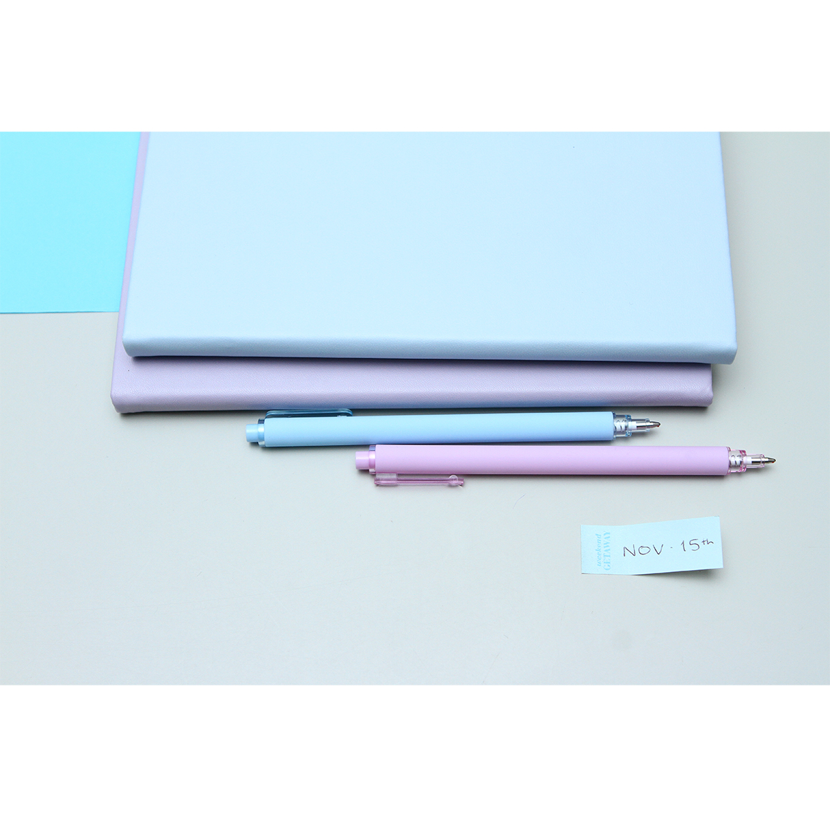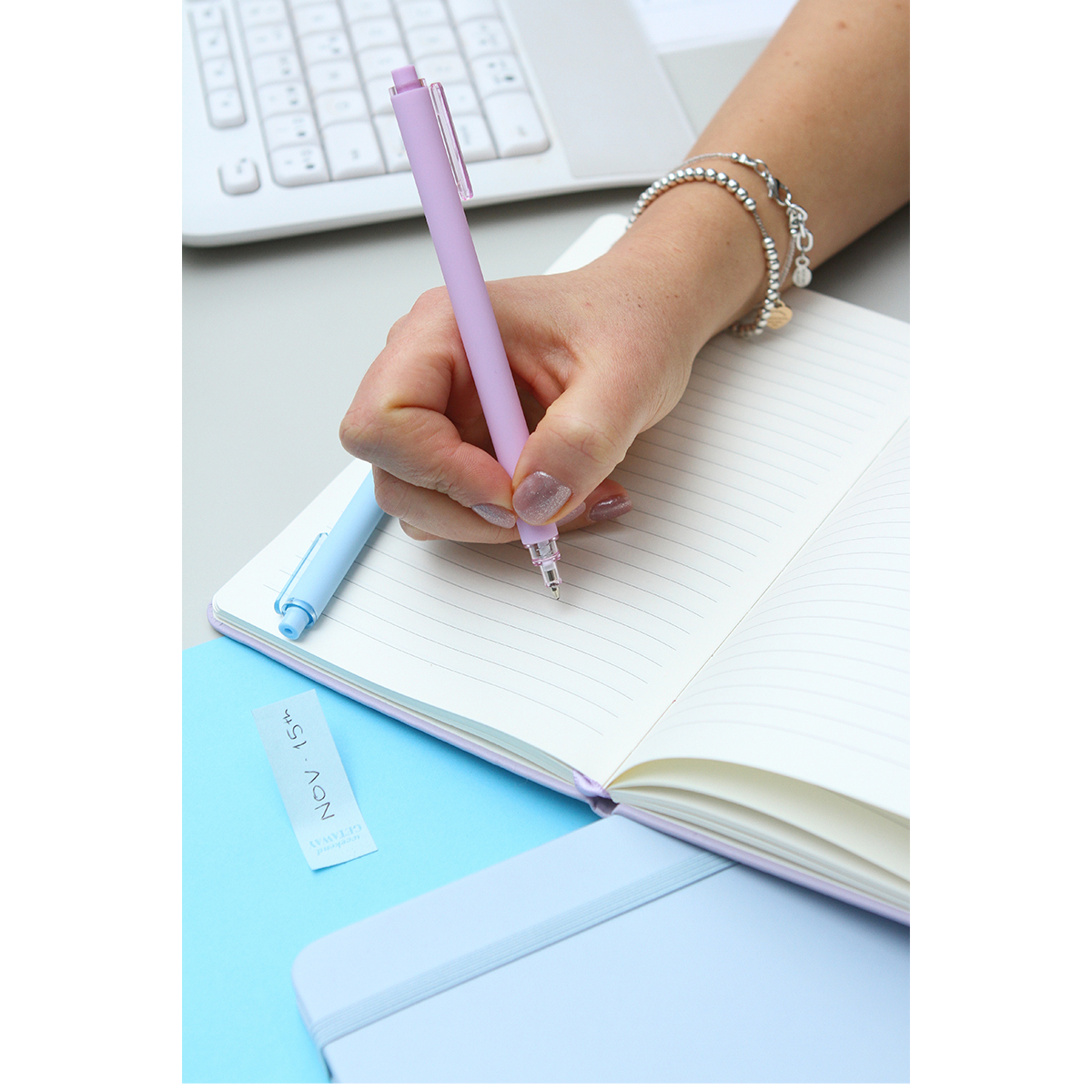 Bolígrafo Villac - Bolígrafo con barril fabricado en plástico ABS con acabado en goma, suave al tacto. Con clip de plástico y mecanismo de botón fabricado en plástico transparente AS. Diferentes colores a elegir con tinta de escritura color azul 1.0 mm.