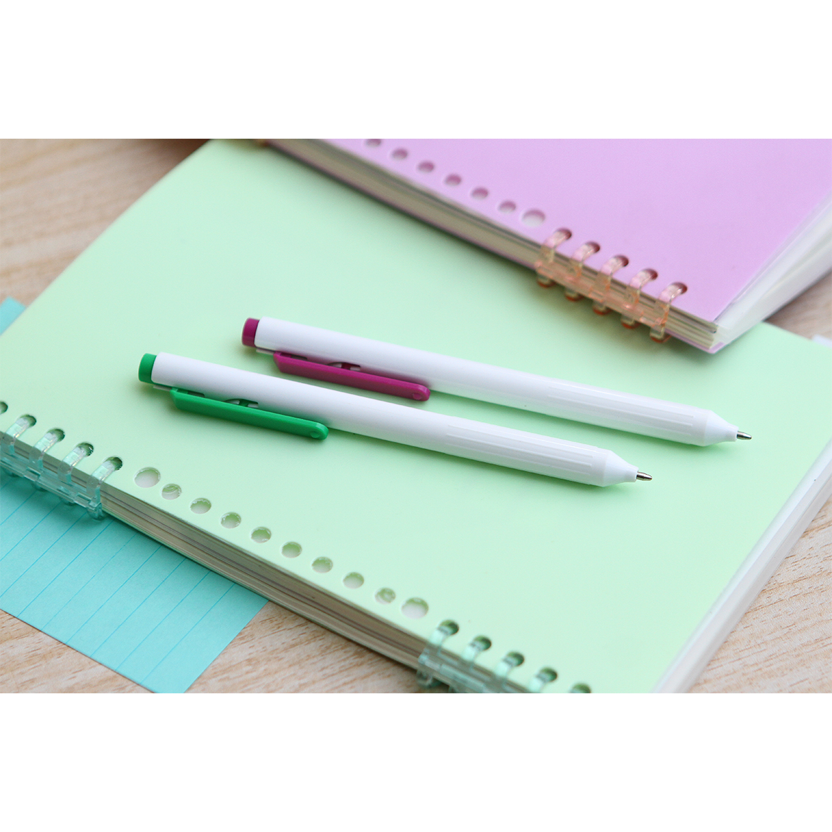 Bolígrafo Vaiges. - Bolígrafo con barril fabricado en plástico ABS color blanco y clip en diferentes colores a elegir, mecanismo de botón. Tinta de escritura negra.