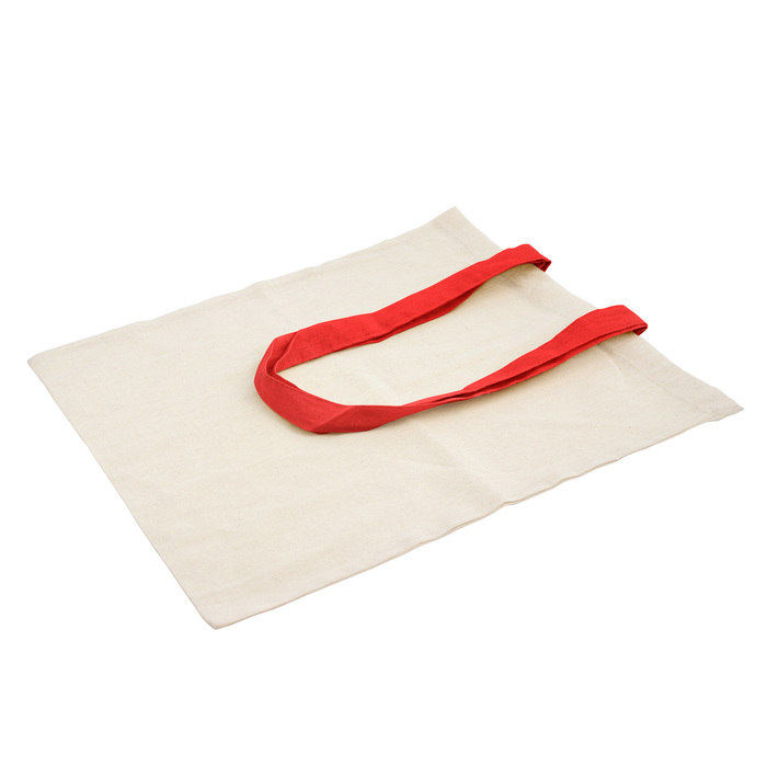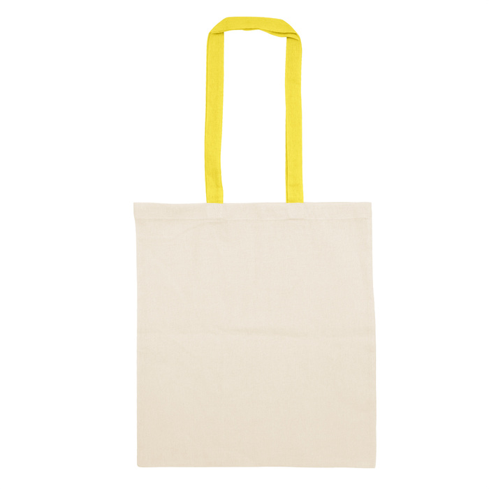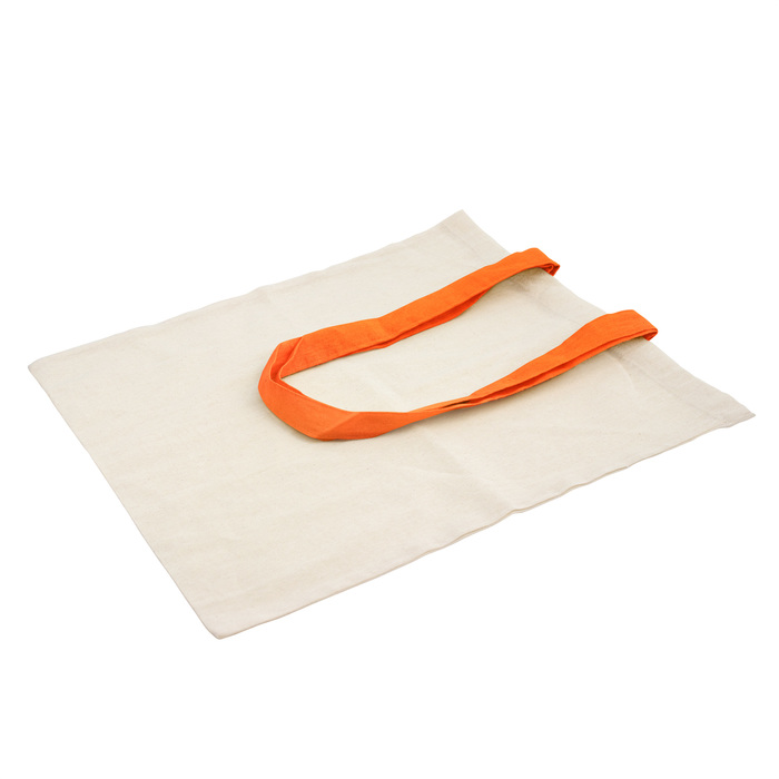 Bolsa de algodón "DONNA" Estilo en tus compras. Bolsa reutilizable color natural con manijas de diferentes colores. Manijas cosidas de 70cm x 2,5 cm
