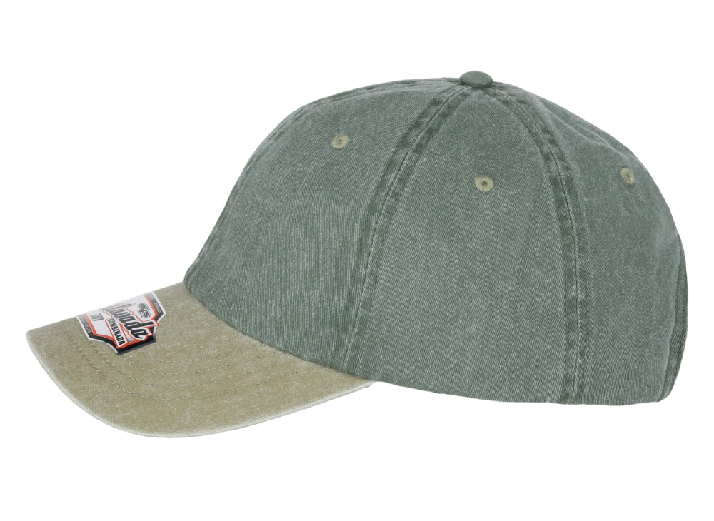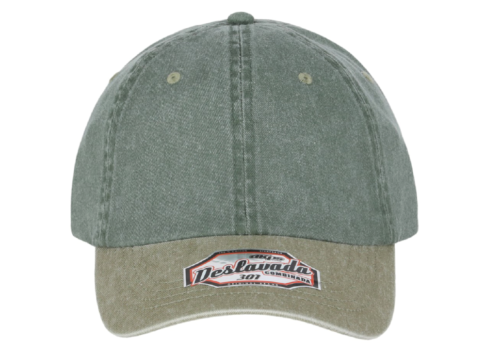 DKPS #301 GORRA DESLAVADA COMB OLIVO UN GAB PIGMENTADA 100% ALG. AJUSTE VELCRO