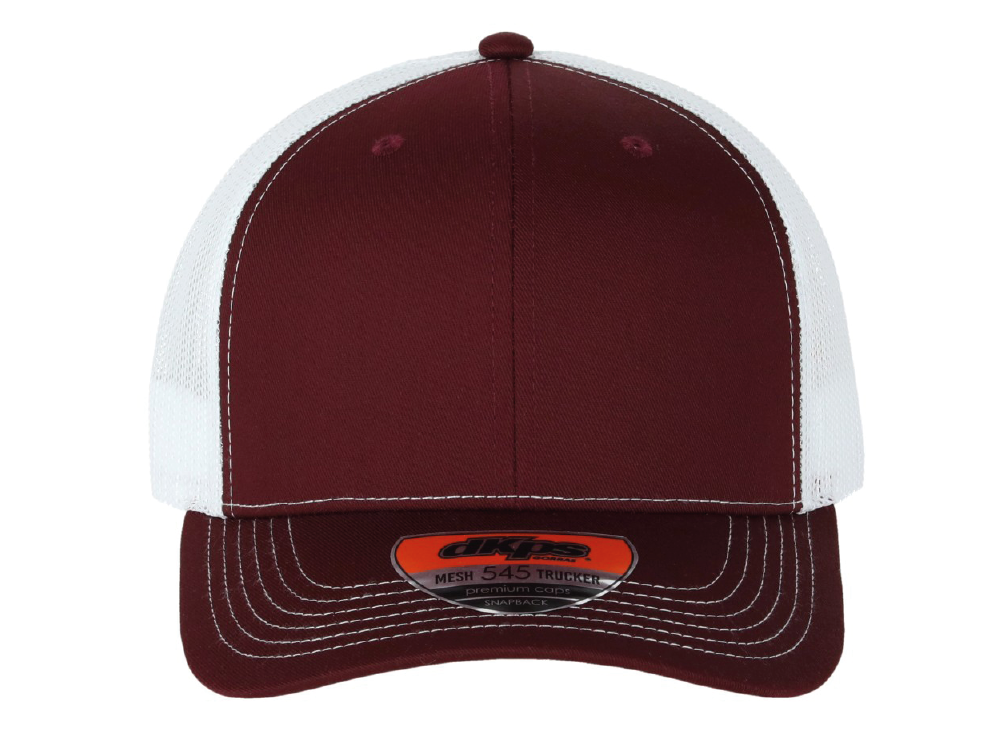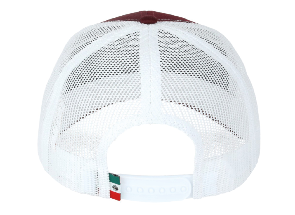 DKPS #545 GORRA MESH VINO/BLANCO, ALG 50% POL 50%, MALLA PREMIUM 6 GAJOS, AJUSTE PLASTICO