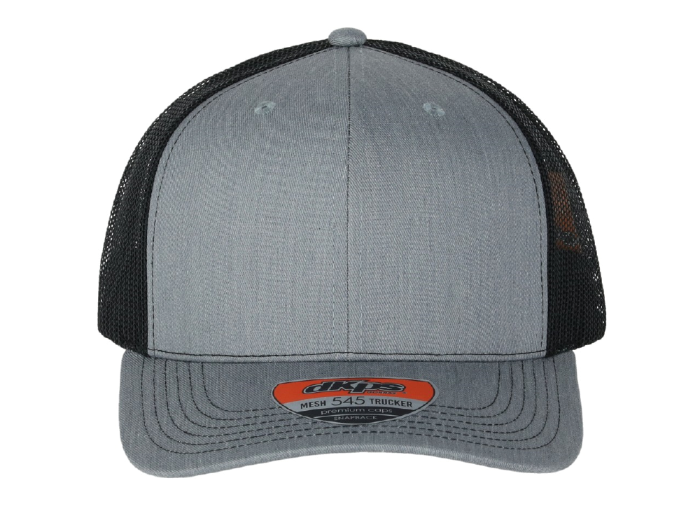 DKPS #545 GORRA MESH JASPE CLARO/NEGRO, ALG 50% POL 50%, MALLA PREMIUM 6 GAJOS, AJUSTE PLASTICO