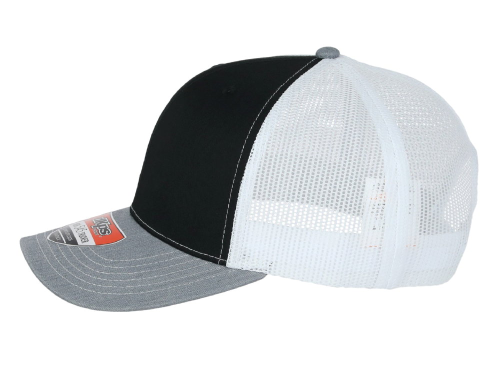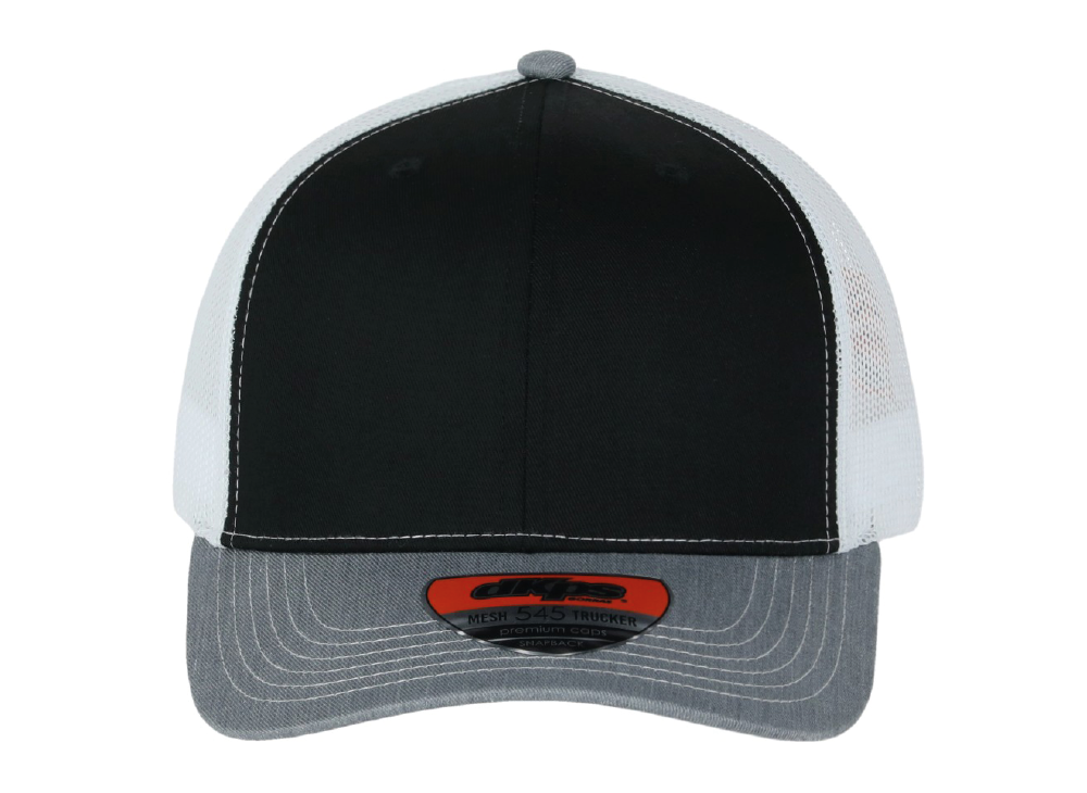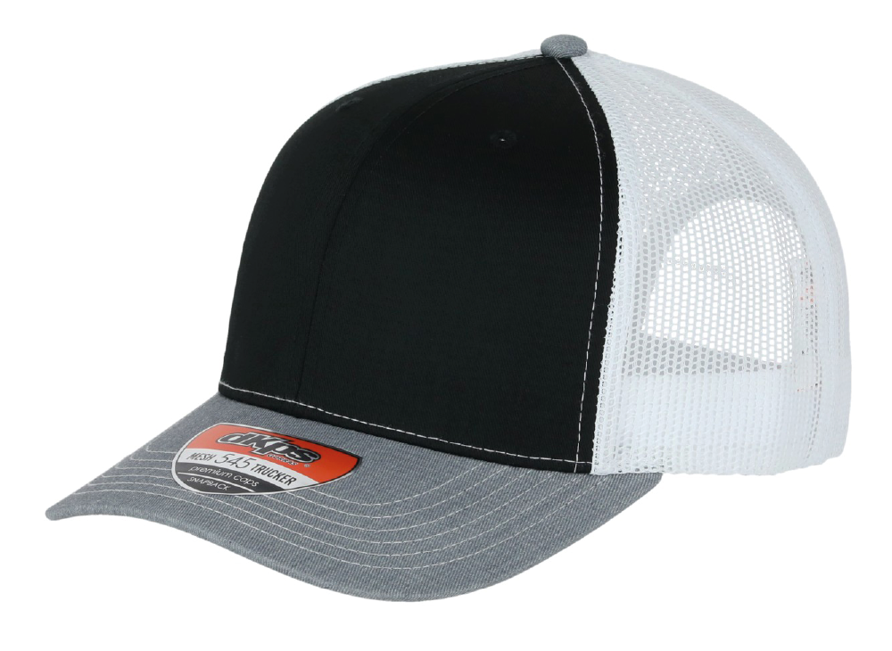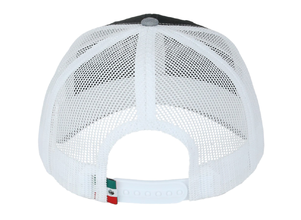 DKPS #545 GORRA MESH NEGRO-TRES, ALG 50% POL 50%, MALLA PREMIUM 6 GAJOS, AJUSTE PLASTICO