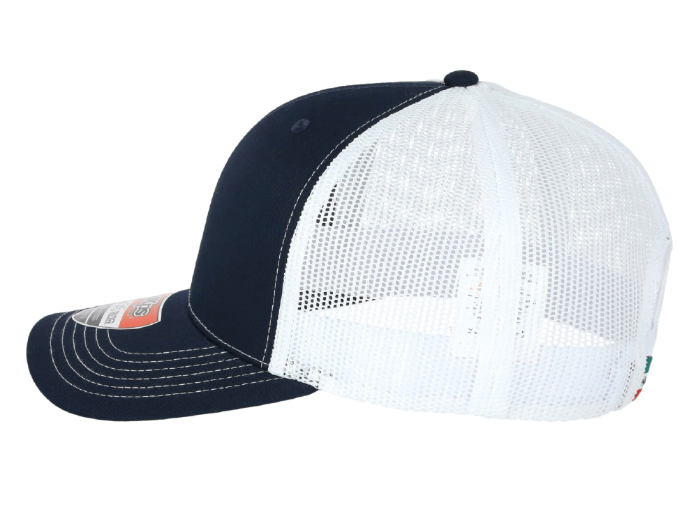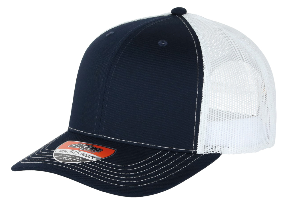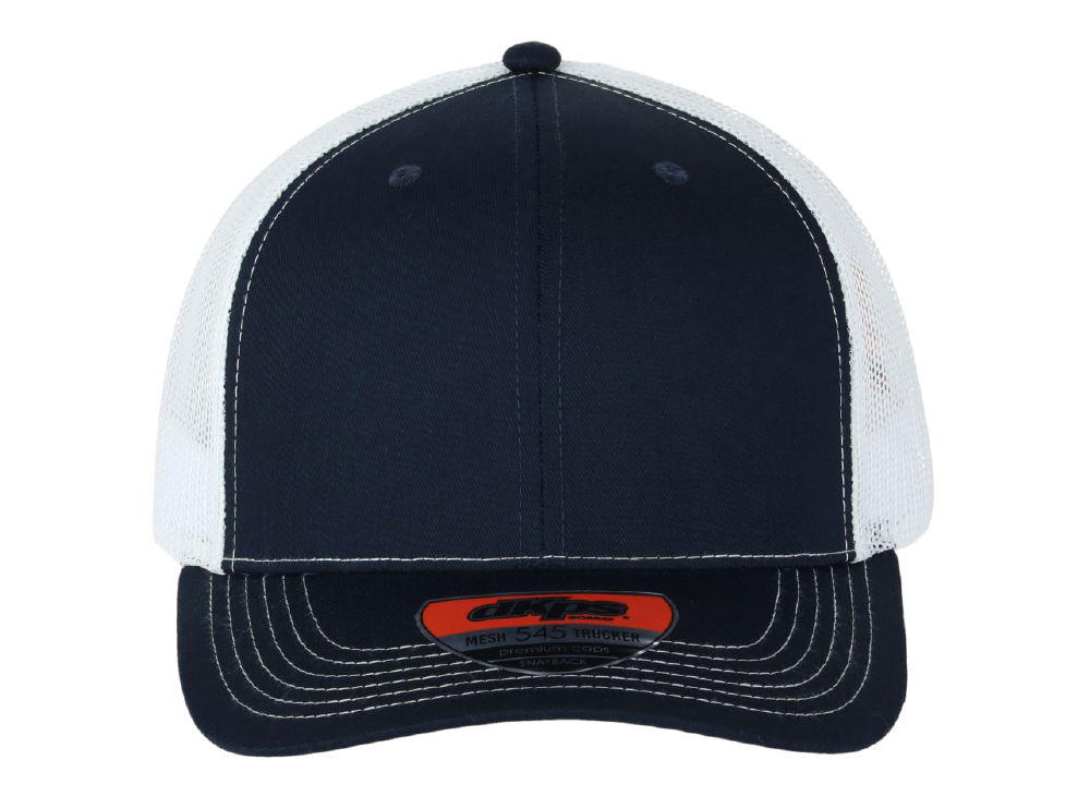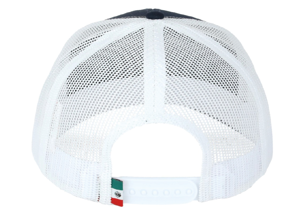 DKPS #545 GORRA MESH BLANCO/MARINO, ALG 50% POL 50%, MALLA PREMIUM 6 GAJOS, AJUSTE PLASTICO