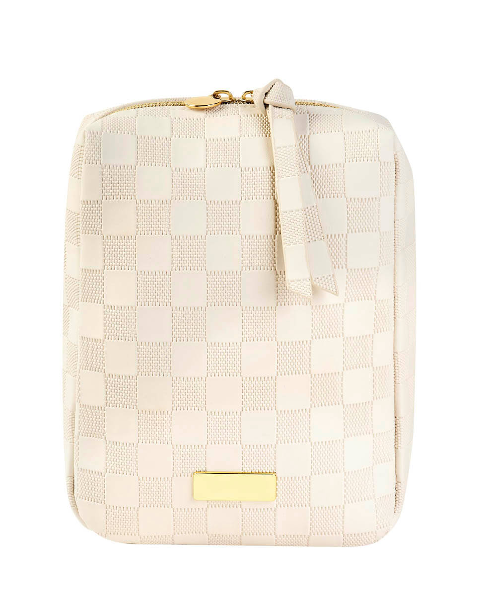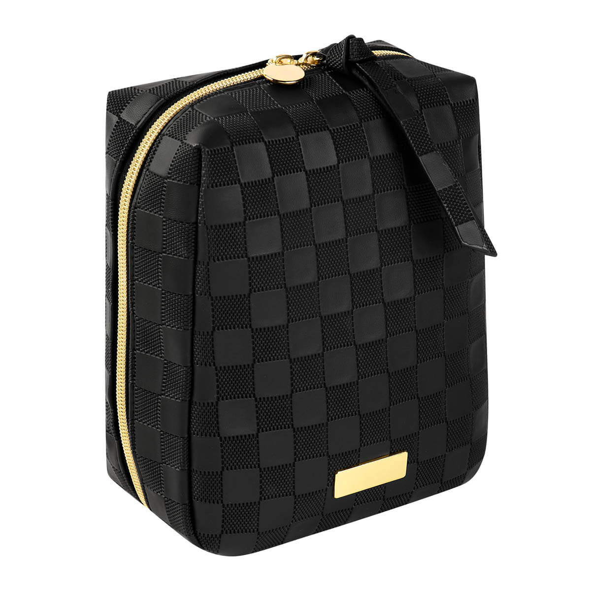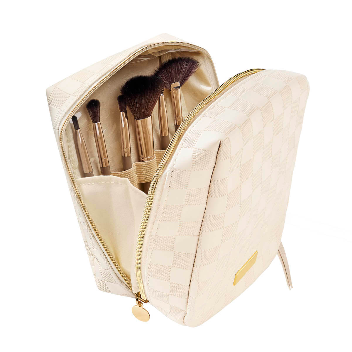 COSMETIQUERA JOANNA - Organizador de cosméticos.Compartimento con abertura amplia facilita el acceso y la organización de brochas y accesorios, manteniéndolos siempre en orden y a la vista. Además, la placa metálica al frente añade un toque de distinción. Ideal para quienes valoran la practicidad en su rutina de belleza.