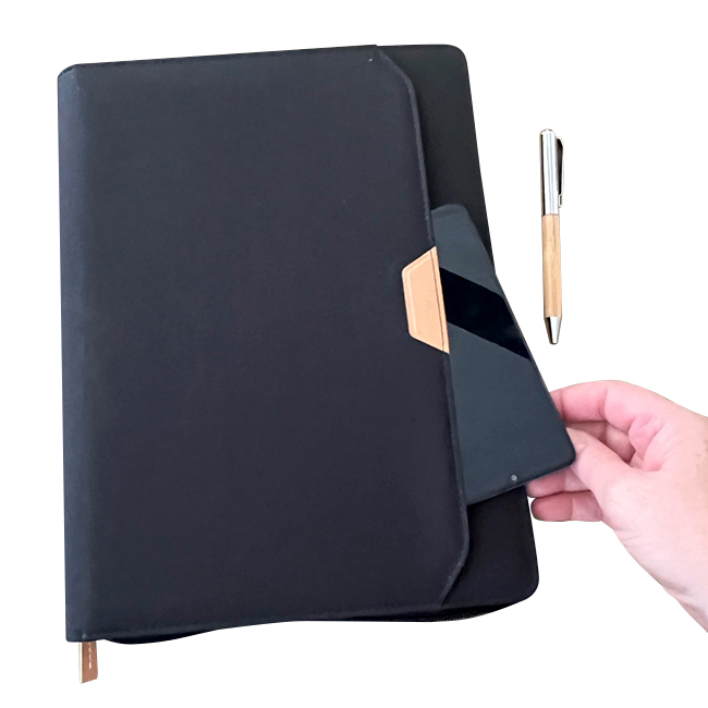 BARCELONA Libreta de poliuretano texturizada con compartimento para celular y re...