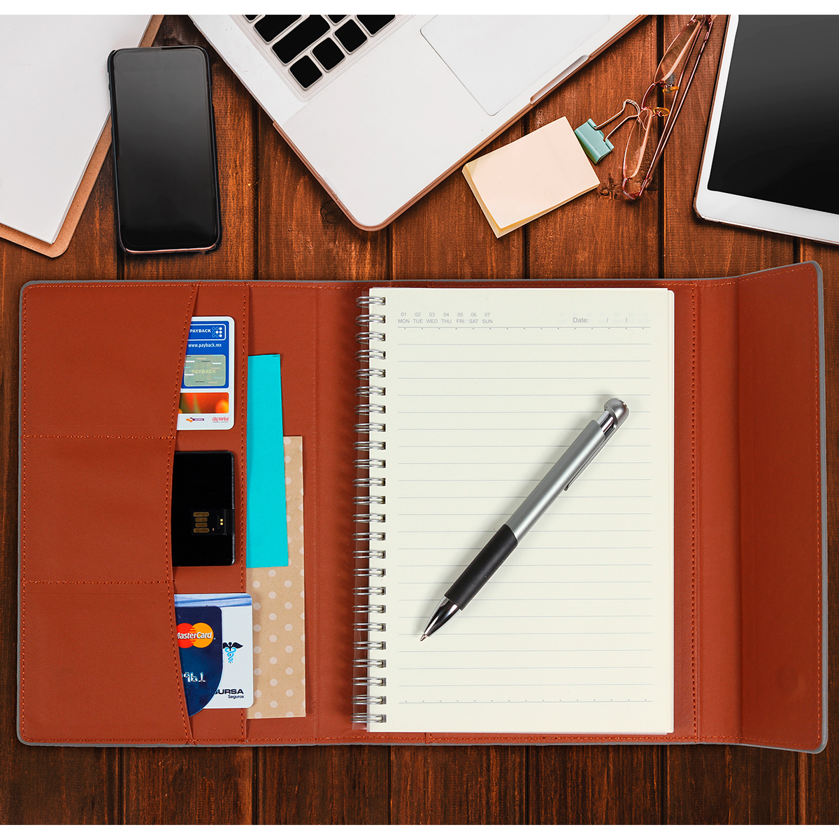 Carpeta tamaño carta con porta block y porta pluma...