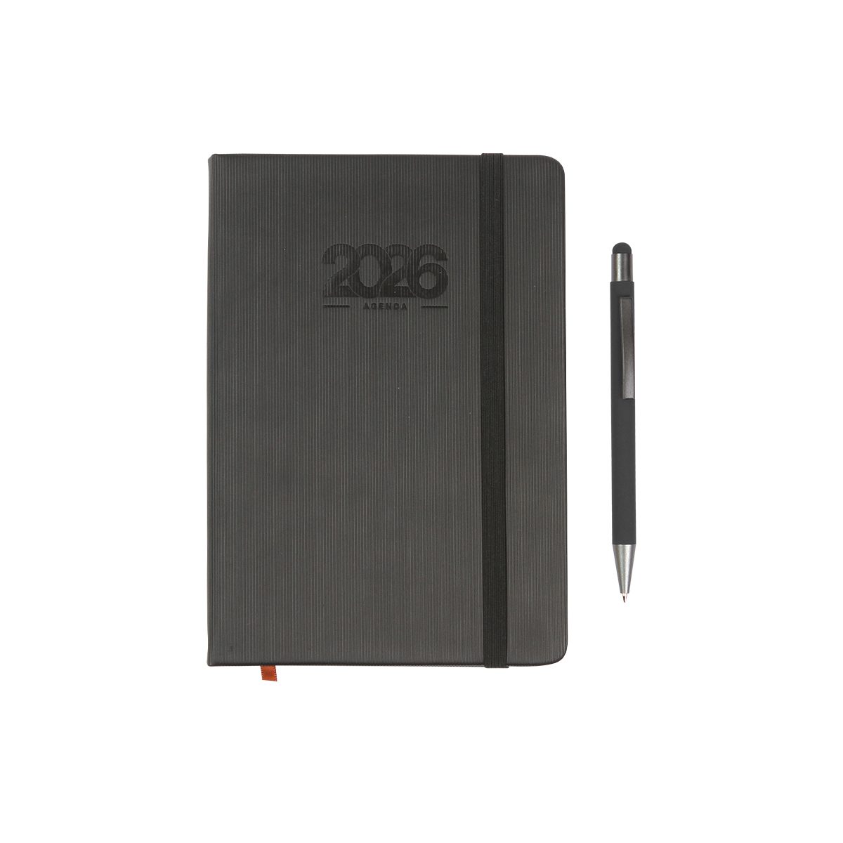 Agenda Diaria Cameri. - Set de Agenda diaria 2026 bi-tono con pluma y caja de re...