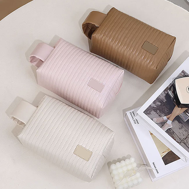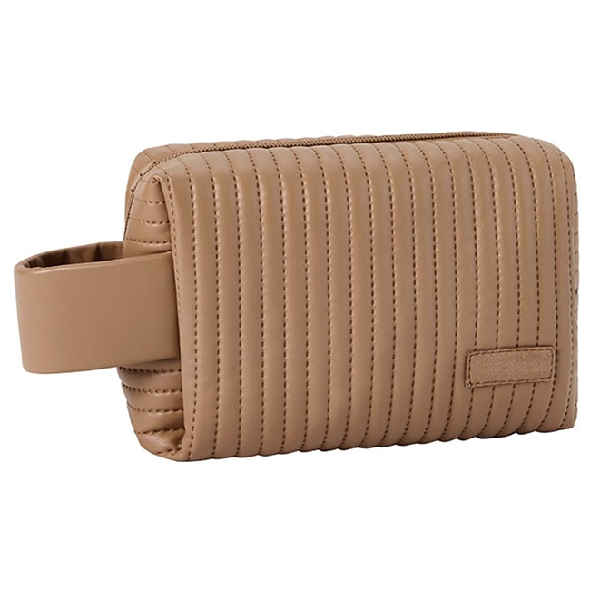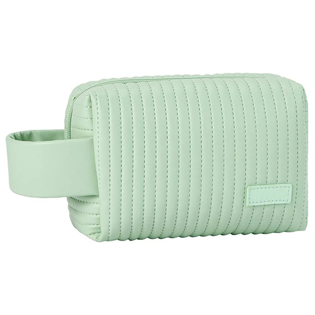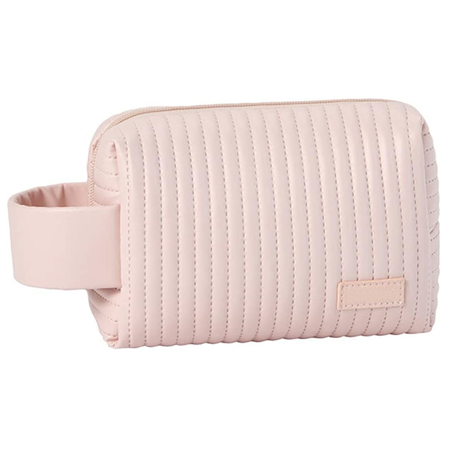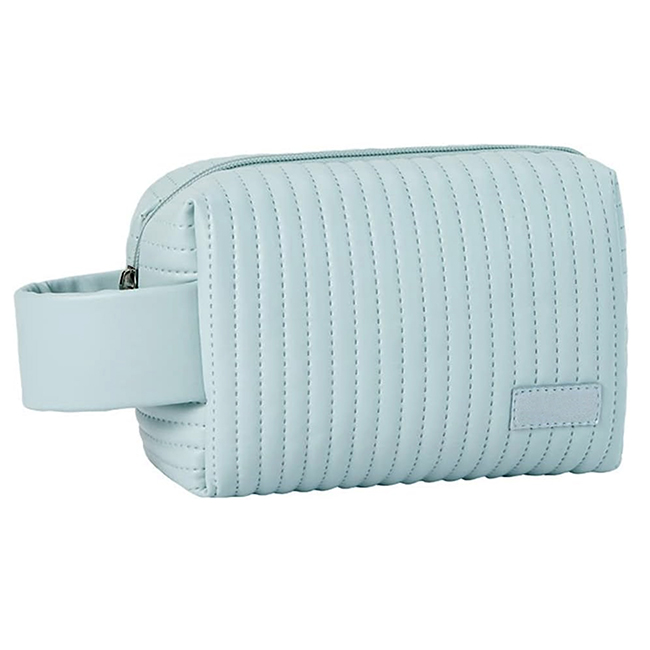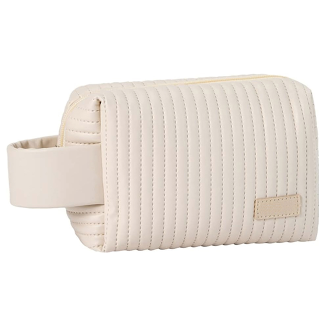 • Cosmetiquera con cierre en zipper y correa en el lomo para sujetar.