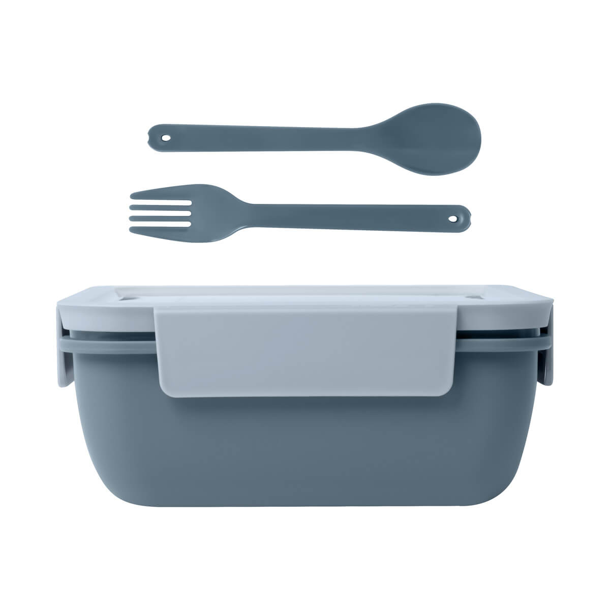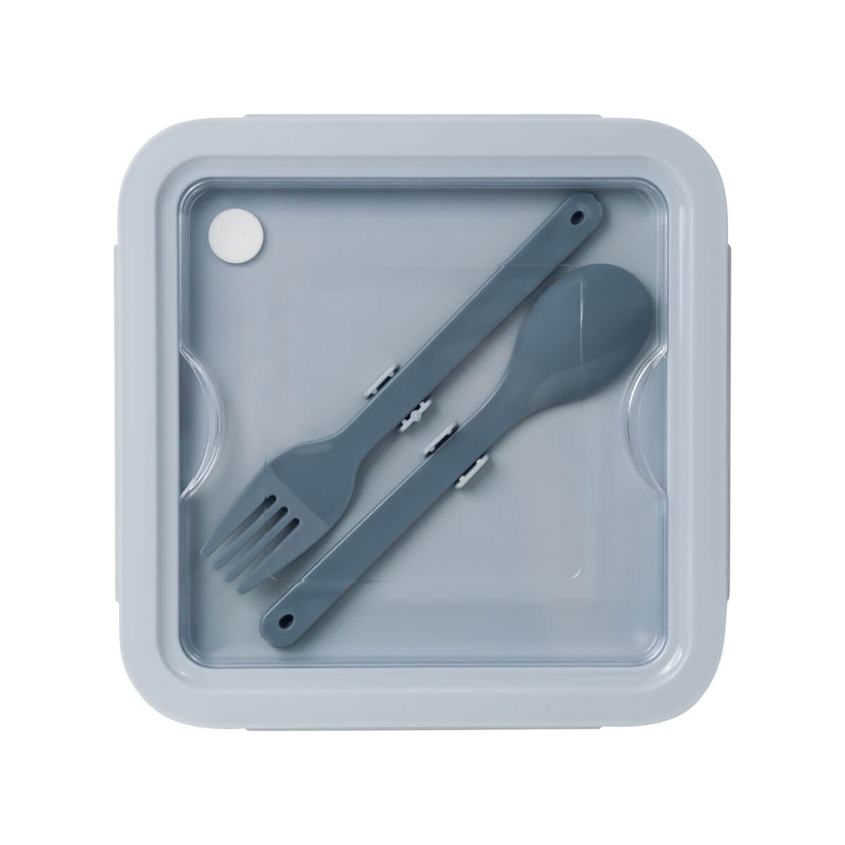 PORTAVIANDAS DIMITAR - Contenedor de alimentos compacto y versátil con divisor interno para mantener tus alimentos seguros y organizados. Tapa con cierre hermético de cuatro pestañas para evitar derrames. Sobre tapa con compartimento integrado que incluye un tenedor y una cuchara. Su innovador diseño, ofrece una solución práctica para transportar tus alimentos a cualquier lugar. Apto para microondas.