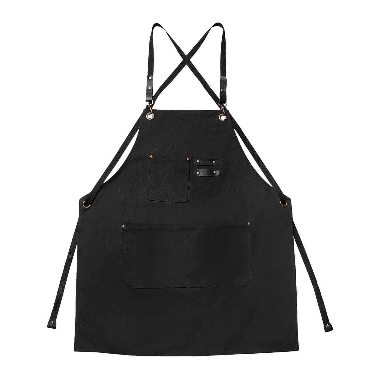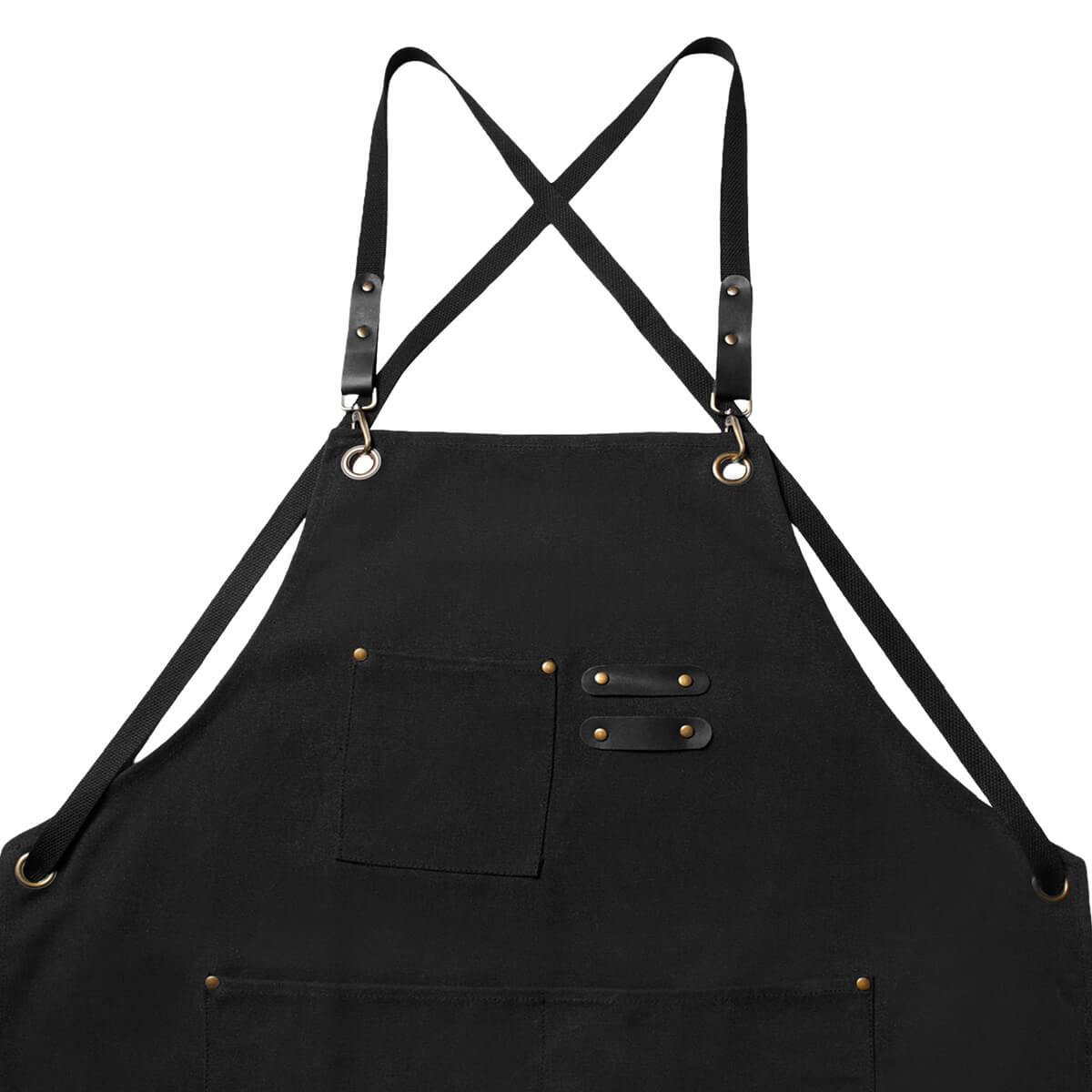 MANDIL SCHORT - Incluye tres bolsillos frontales: uno en la parte superior, ideal para objetos pequeños, y dos en la parte inferior, perfectos para herramientas, utensilios o accesorios. Cuenta con tirantes ajustables con hebillas metálicas y remaches que aportan mayor resistencia y un toque de estilo. Su diseño cruzado en la espalda ofrece mayor comodidad. Elaborado para entornos de trabajo exigentes, desde cocinas industriales hasta talleres o espacios creativos.