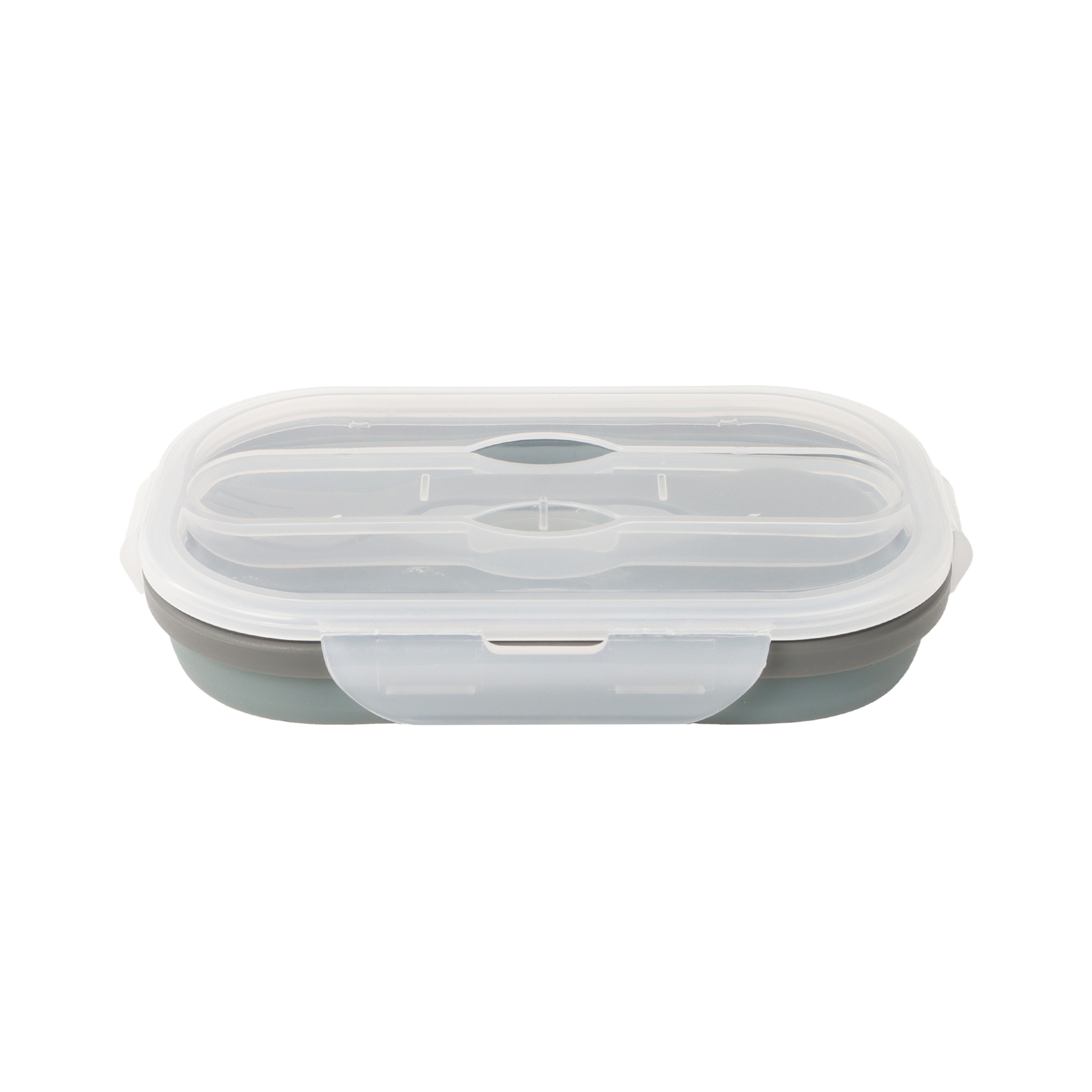 TARTA Contenedor de alimentos de silicón plegable con cierre hermético y utensilios.