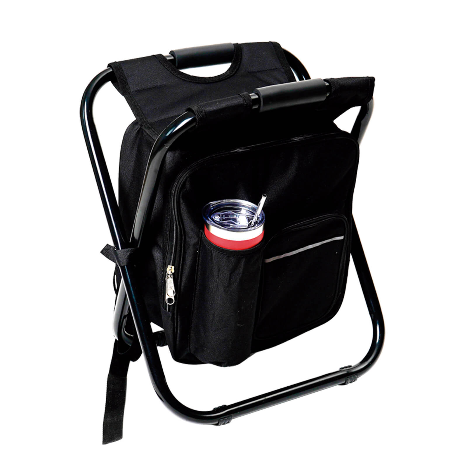VIEDMA Lonchera tipo backpack con compartimento principal, doble cierre, bolsa frontal con cierre, bolsa trasera y compartimento para bebidas. Cuenta con tirantes con correas ajustables y tubos metálicos para convertirla en silla plegable.
