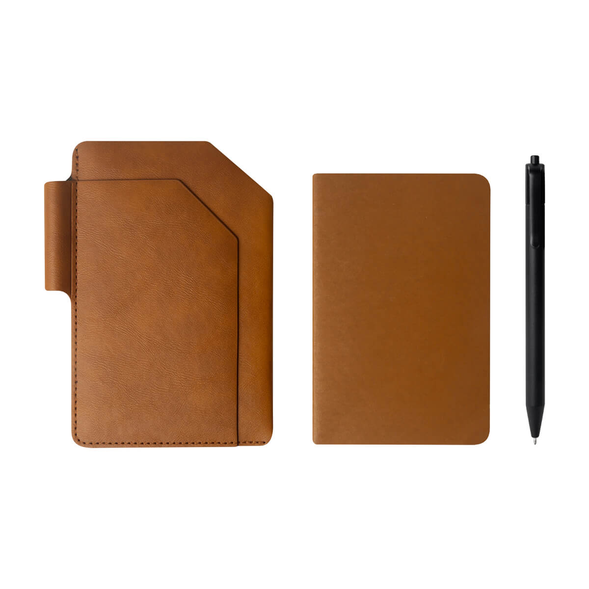 MATERIAL: Curpiel / Papel / Plástico MEDIDAS: 11.7 x 15.5 cm Porta Pasaporte / 8.9 x 14 cm Libreta / 1 x 14.5 cm Bolígrafo IMPRESION: Serigrafía / Tampografía MED. EMPAQUE: 36 x 41 x 27 cm PESO EMPAQUE: 24.2 Kg PIEZAS EMPAQUE: 200