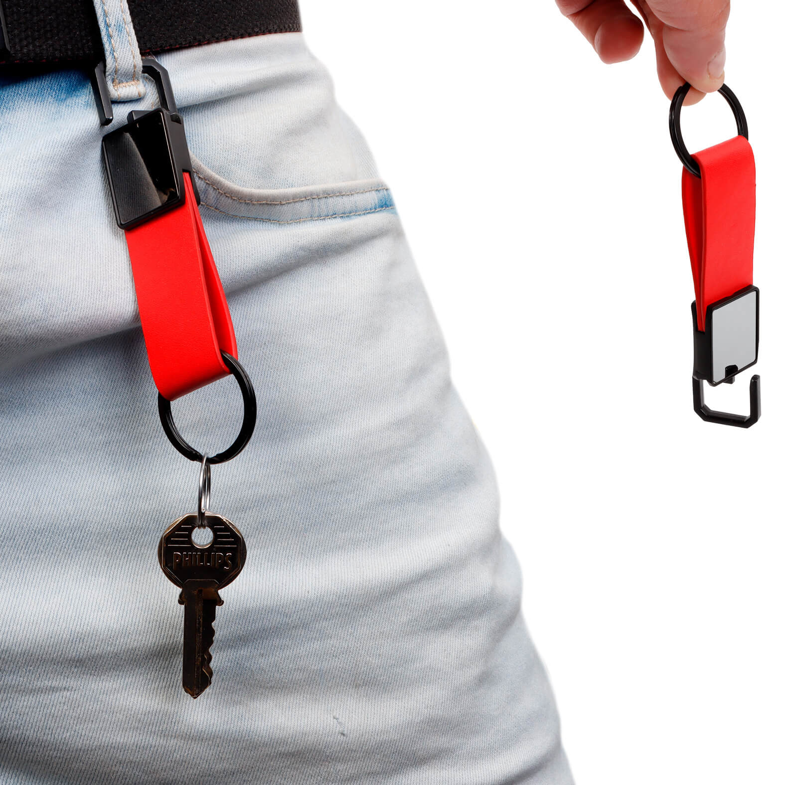 ATHOS Llavero metálico con correa de curpiel y detalle texturizado....