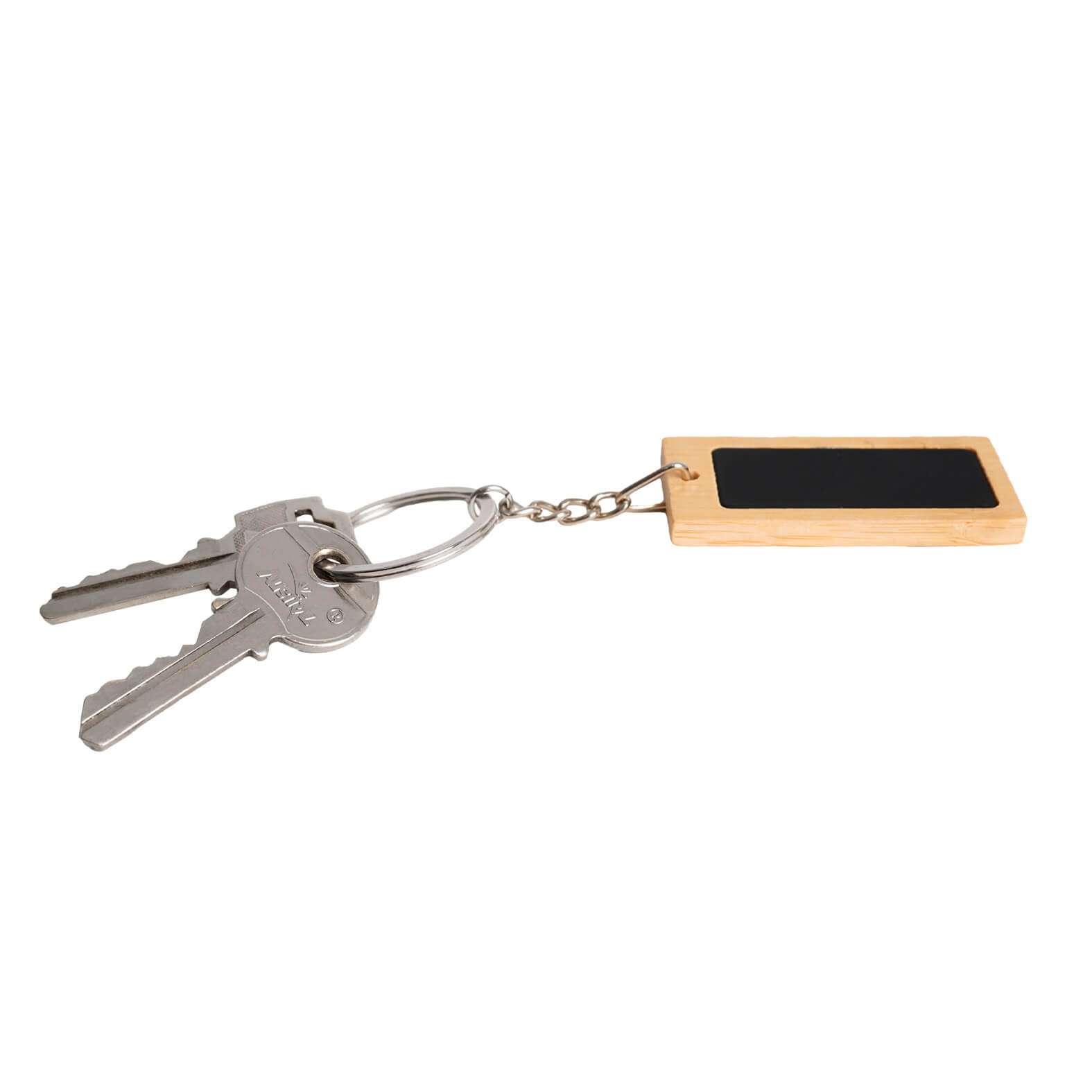 LLAVERO DE BAMBÚ "TAG" Llavero rectangular de bambú con detalles metálicos. P...