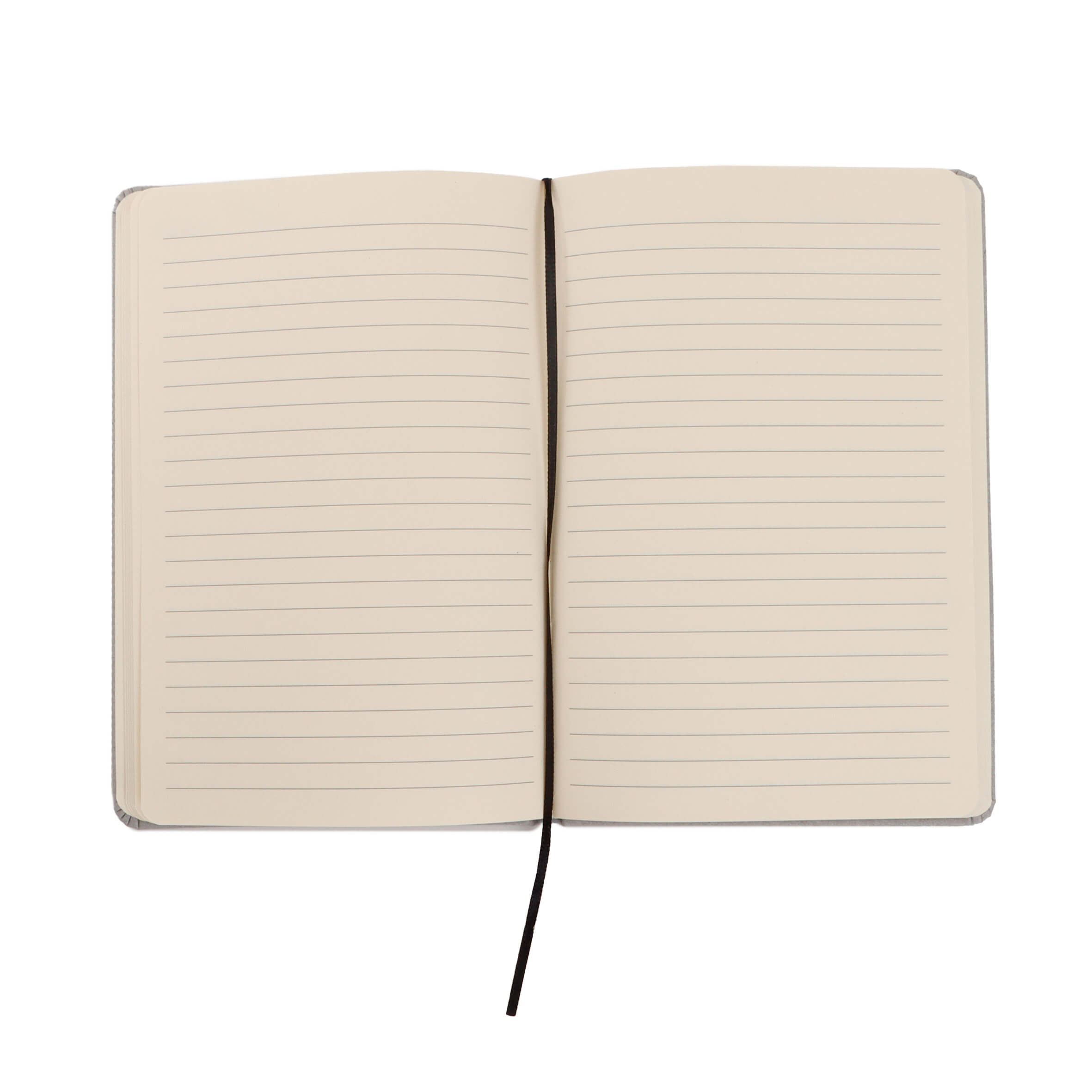 PICON Libreta de picon paper con 82 hojas rayadas, separador y banda elástica. (Picon Paper es un material ecológico elaborado a partir de periódico reciclado, caracterizado por su textura ligeramente rugosa, tono grisáceo natural y resistencia moderada, ideal para fabricar libretas).