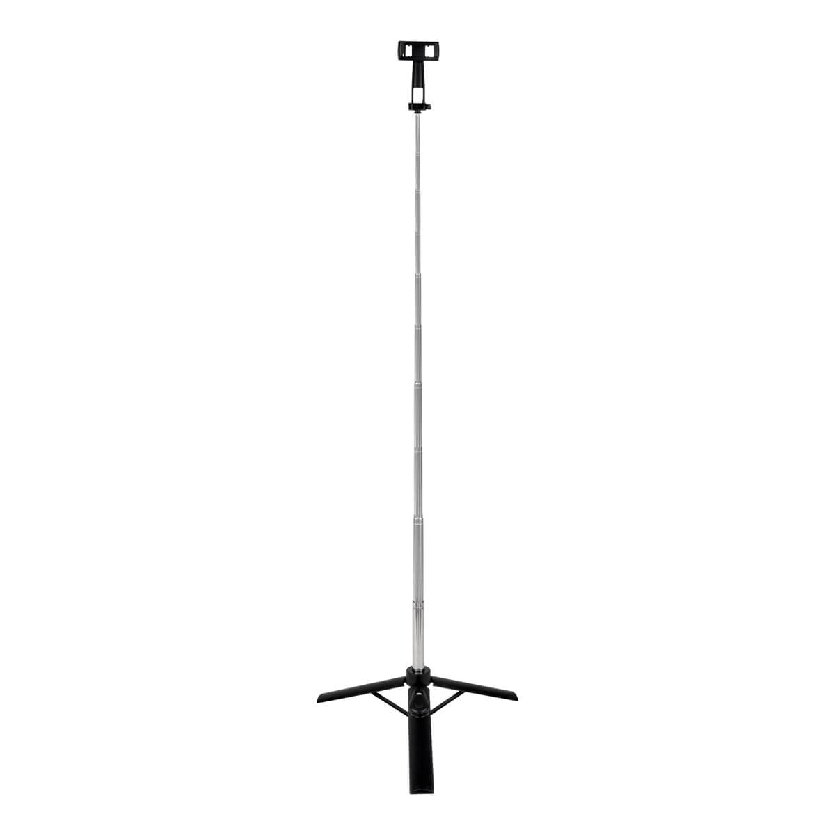 SELFIE STICK SURAT - Selfie stick con tripié amplio para mayor estabilidad. Incluye control remoto Bluetooth con alcance de hasta 10 m, ideal para capturar fotos o videos a distancia. Su brazo extensible de 86 cm y su holder ajustable garantizan ángulos perfectos para cada toma. Perfecto para selfies, videollamadas o grabaciones creativas. El control remoto funciona con batería de botón (incluída).