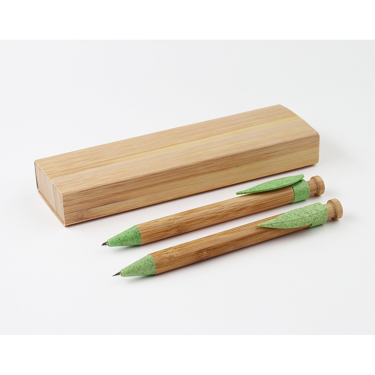 MATERIAL: BAMBÚ MEDIDAS: estuche: 17x5 cm / pluma: 14.5x1.2 cm. IMPRESION: Grabado láser / Serigrafía / Tampografía MED. EMPAQUE: 59x39x26 cm. PESO EMPAQUE: 10 kg. PIEZAS EMPAQUE: 200