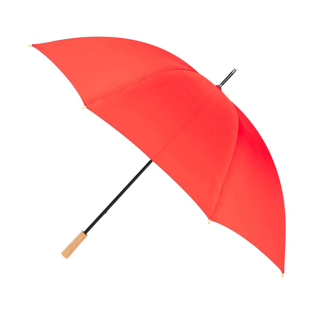 PARAGUAS NUA - Paraguas de 8 paneles con apertura automática. fabricado en plástico reciclado (RPET). Cuenta con mango y punteras de madera. Incluye funda protectora.