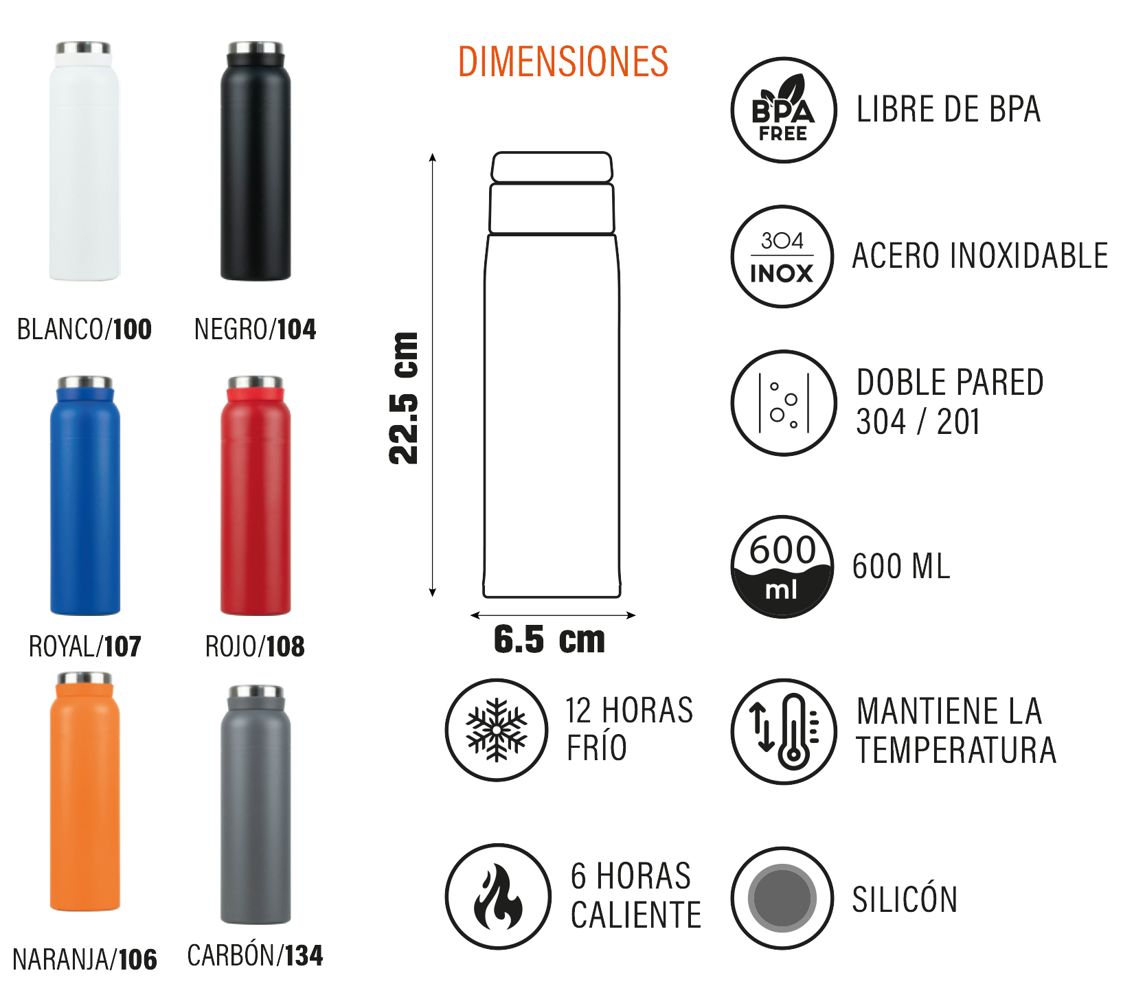 CILINDROS ACERO 500ML COLORES:BLANCO Descripción: Cilindro de acero con popote ...