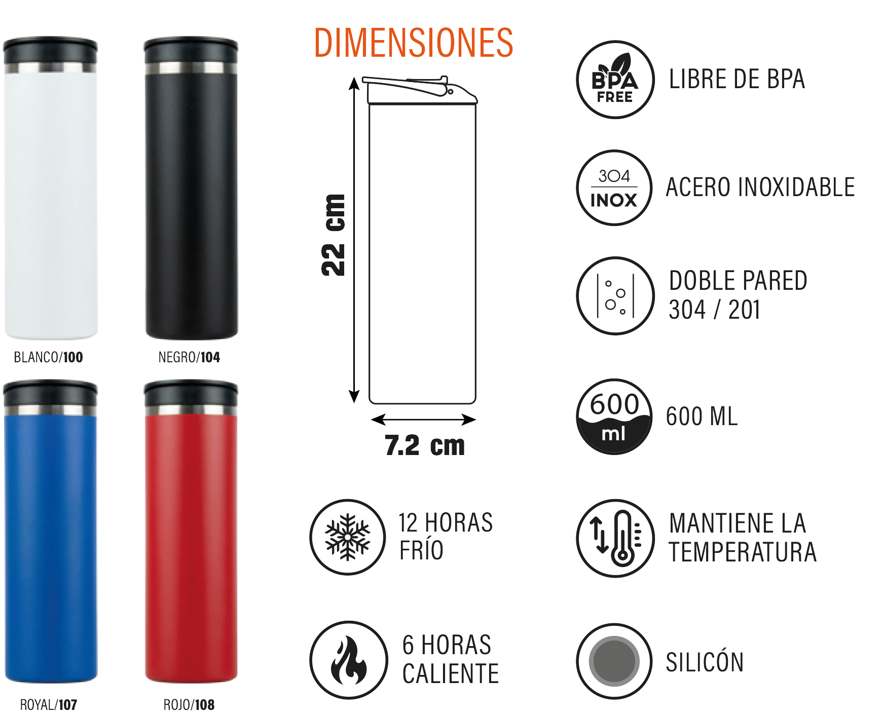 TERMO CHICAGO NEGRO ACERO/PLASTICO CON TAPA AL TONO CON POPOTE Y SILICON...