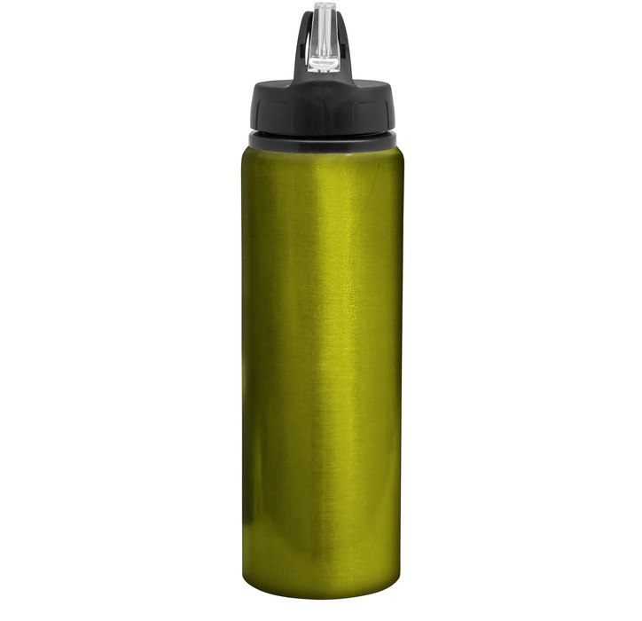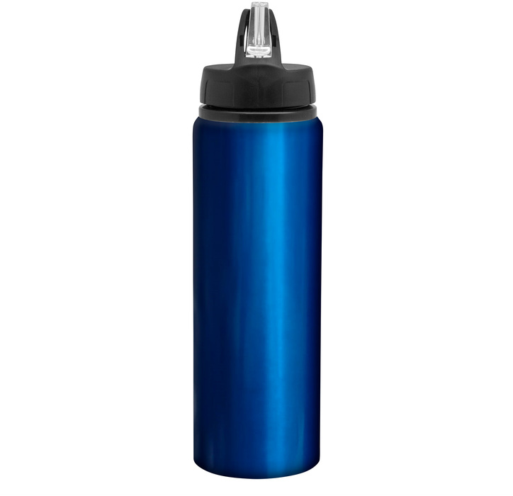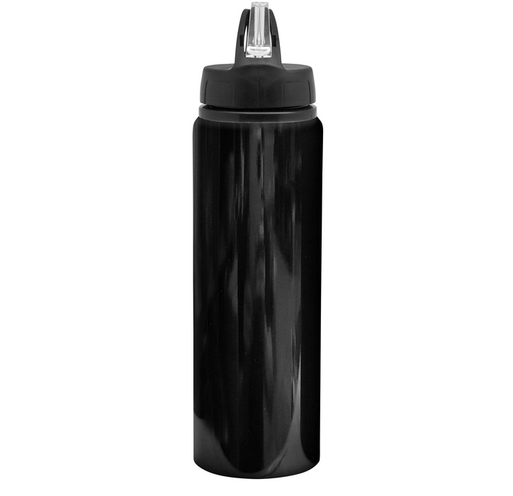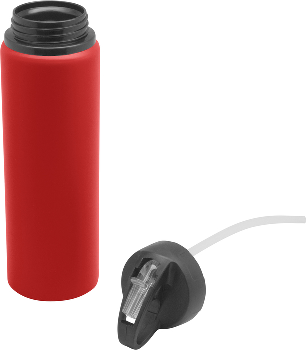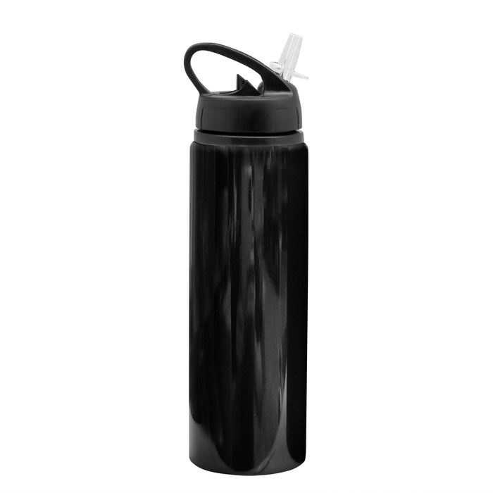 BOTELLA "DRINKER" Botella de aluminio con manija de agarre en la tapa y popote plástico. Tapa a rosca de plástico. Presentación en caja de regalo Kraft.