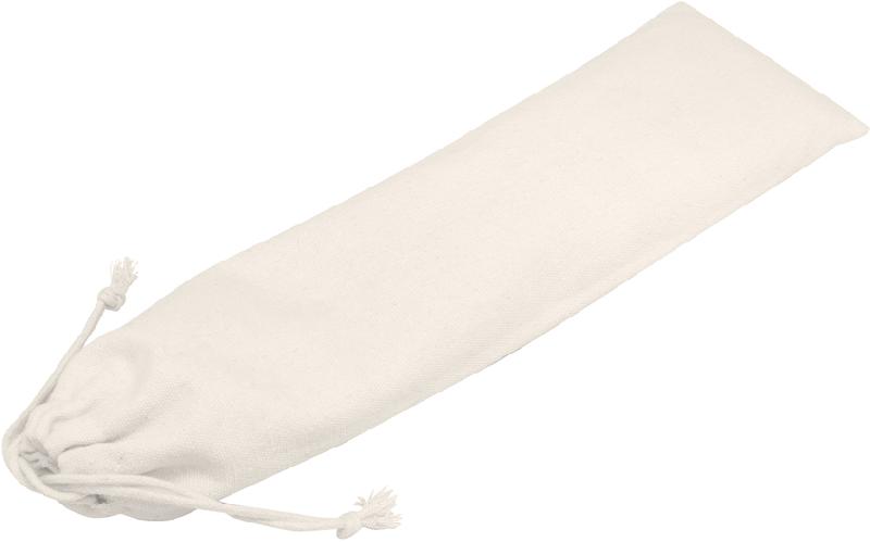 SET DE CUBIERTOS "MEALTIME" Set de cubiertos. 5 elementos: Popote, cepillo para popote, cuchara, tenedor y cuchillo. Mango de madera para los 3 cubiertos. Todo el set está contenido en un estuche de lona color crudo. Presentación en caja de regalo Kraft.