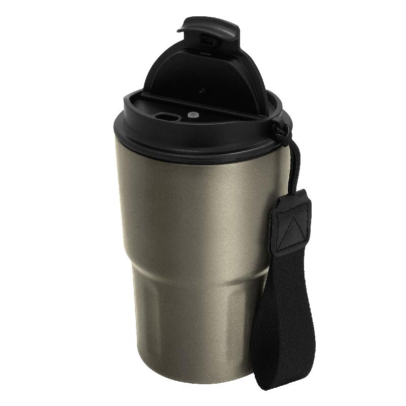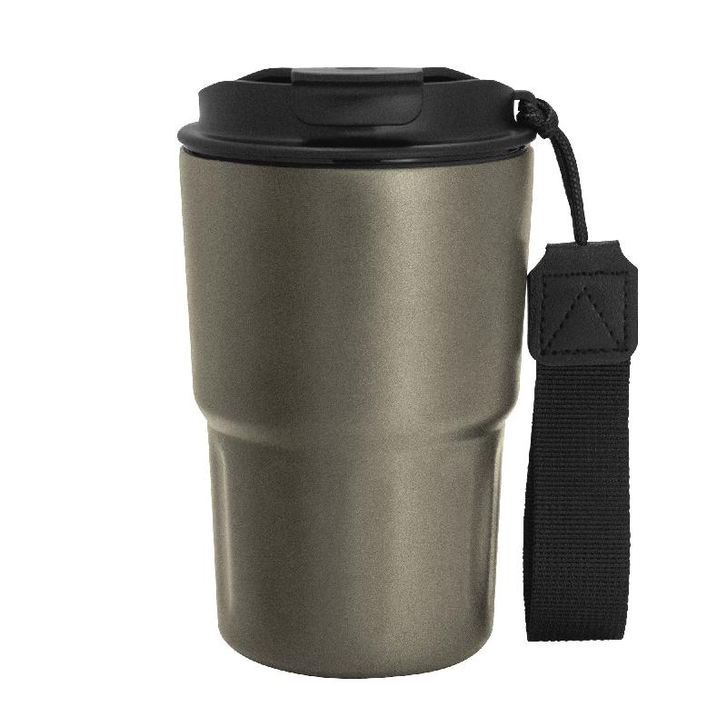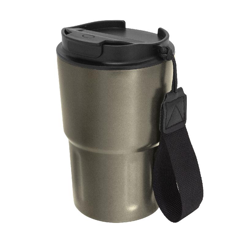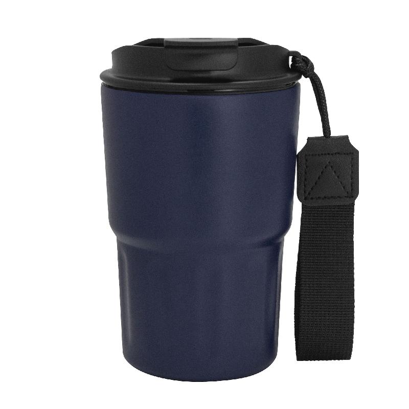 Mug térmico "CAPOF" Capacidad 400 ml. Acero inoxidable. Mug doble pared, sellado al vacío. Interior en acero 304 y exterior en acero 201. Tapa de polipropileno con anillo de silicona y correa de poliéster en color negro. Pintura acabado mate. Mantiene por más de 12 hs la temperatura de las bebidas calientes y 24 hs de las bebidas frías. Presentación en caja de regalo Kraft.