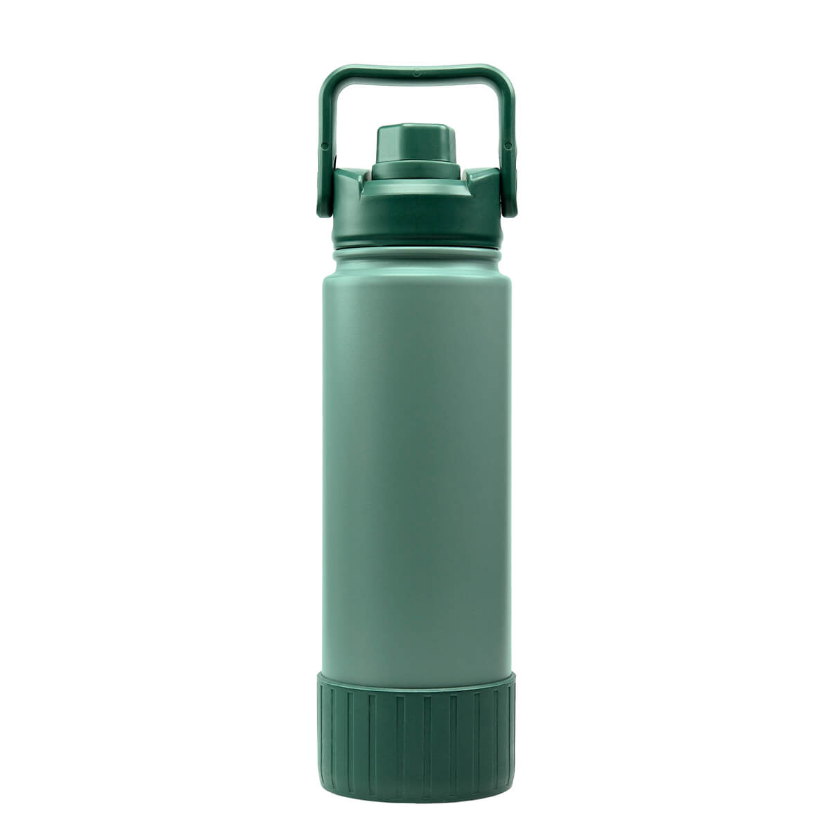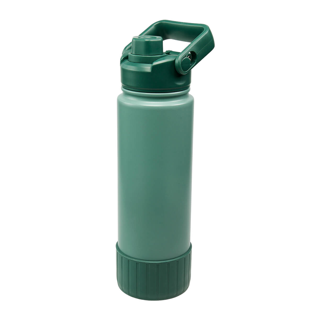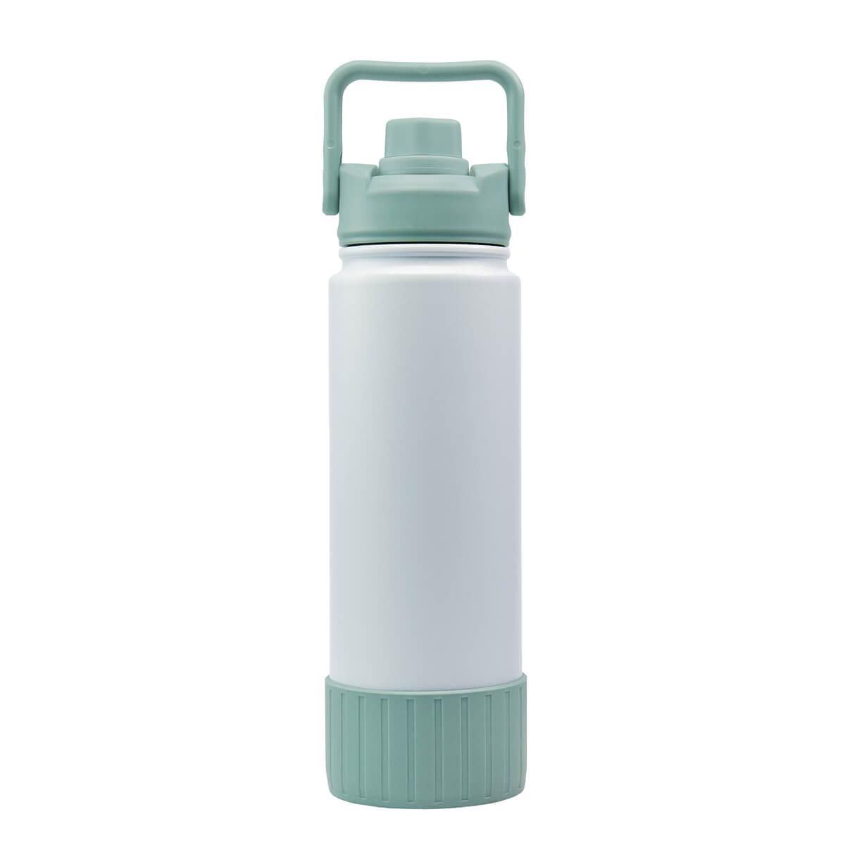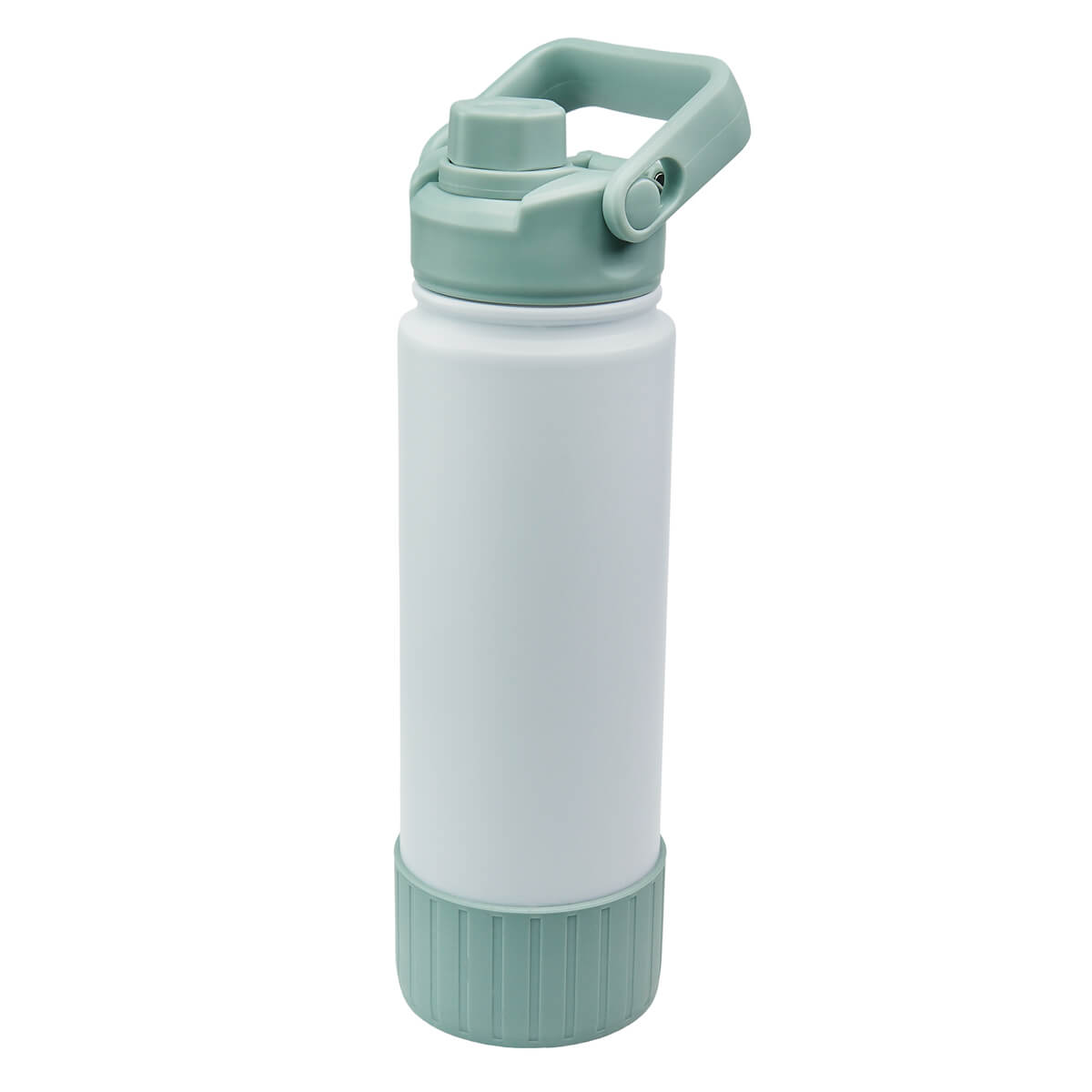 TERMO SIDNEY - Termo doble pared. Cerrado al vacío. Pared interna y externa de acero inoxidable. Tapa y sobre tapa de plástico con diseño innovador, su cierre de rosca permite un sellado seguro que permite beber fácilmente. Cuenta con un asa plegable para llevarlo a todos lados, ideal para oficina o actividades al aire libre. Incluye una manga de silicón antiderrapante sobre la base, que permite protegerla de golpes y raspones. Mantiene tus bebidas calientes por 12 hrs y frías hasta 16 hrs. Capacidad de 24 Oz. Incluye caja individual.
