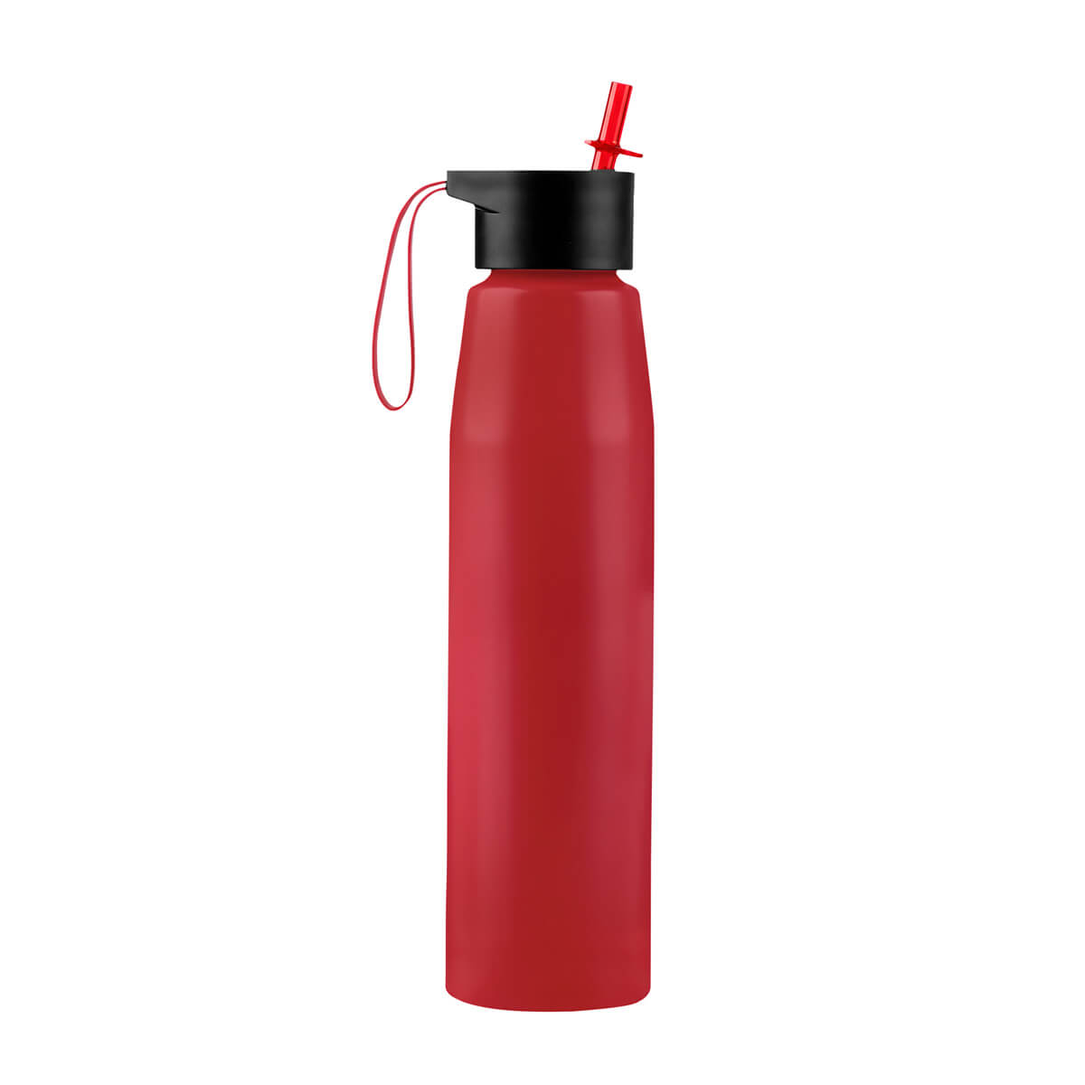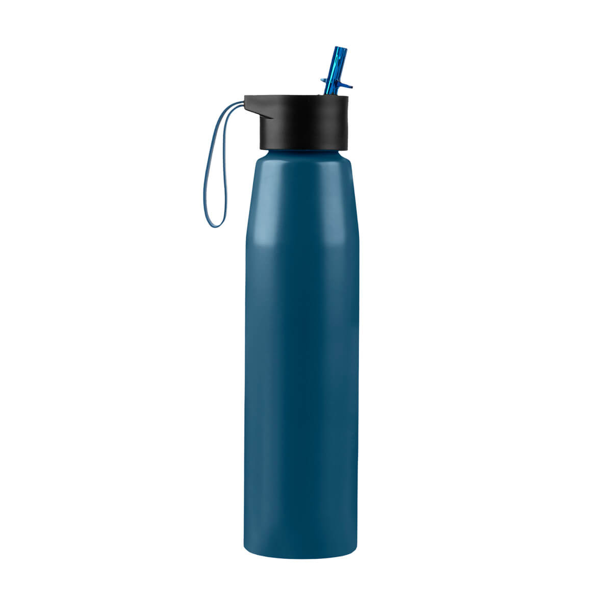 CILINDRO TONDO - Cilindro metálico de una pared. Incluye tapa de plástico con sistema de rosca para un cierre hermético y seguro, cuenta con una boquilla plegable para beber sin riesgo de derrames, incluso estando en movimiento. Incluye popote de plástico. La tapa incluye también un asa de silicón, que permite transportarlo fácilmente a cualquier parte. Capacidad de 25 Oz. Incluye caja individual.