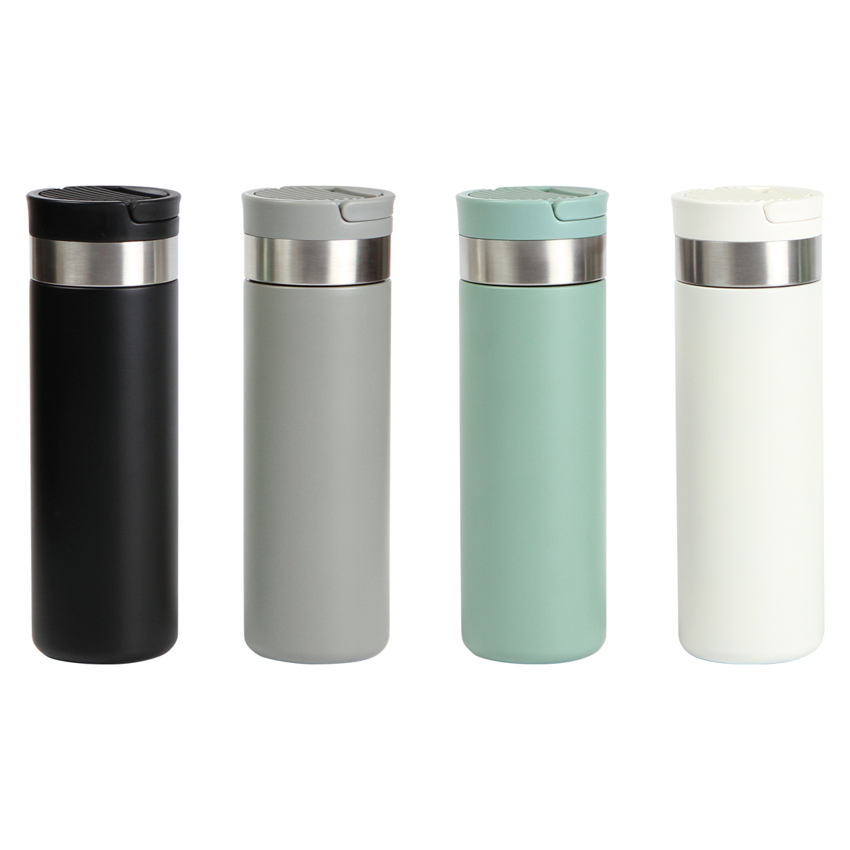 Termo Aopo. - Termo de acero inoxidable doble pared, con pastillero, rejilla para te y porta celular en la tapa. Fabricado en materiales de grado alimenticio, mantiene bebidas frías o calientes por un largo tiempo. No usar en microondas. Capacidad de 500 ml. Incluye caja de cartón individual.