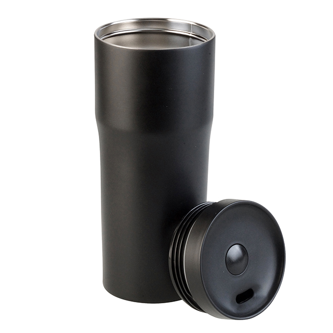 Termo Yuca Termo Yuca Capacidad: 480 ml. Funciones: Sistema de doble pared al vacío. Insertable al auto. Tapa con botón de cierre automático. Color Negro.