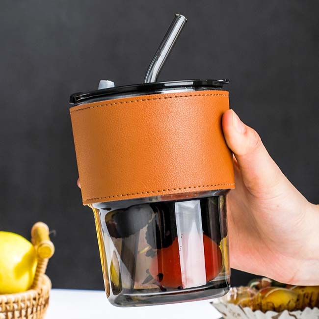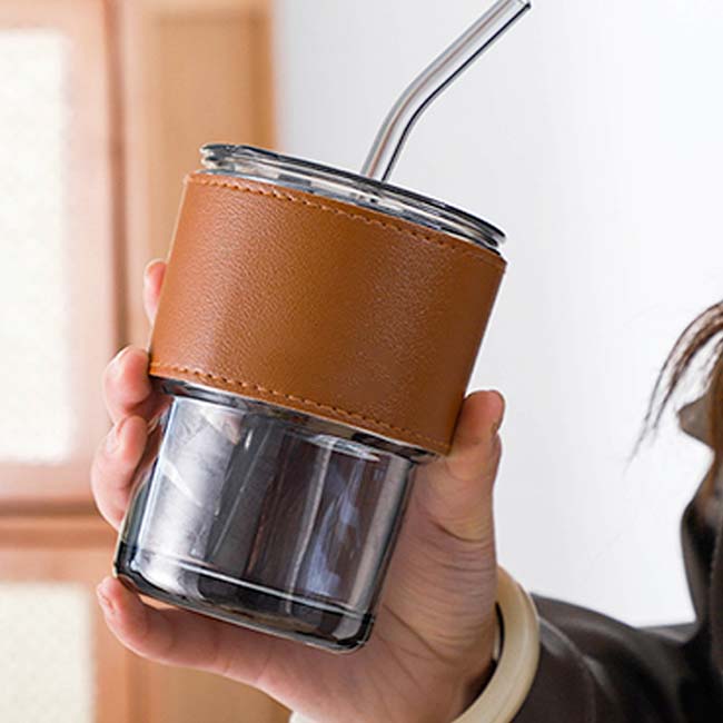 Vaso Capuchino Vaso Capuchino Capacidad : 350 ml Manga protectora en curpiel. Incluye popote. Tapa con lengüeta en cierre a presión. Colores: Café