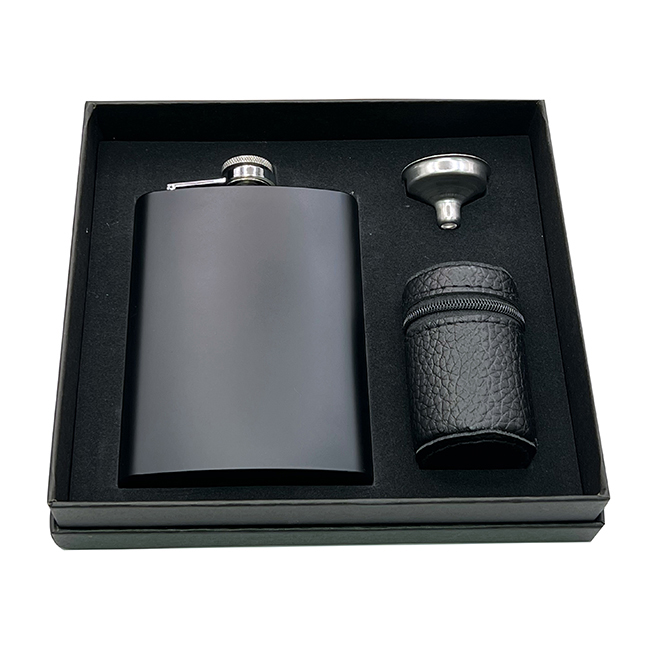 Incluye embudo y 4 vasos-shot en estuche de curpiel.