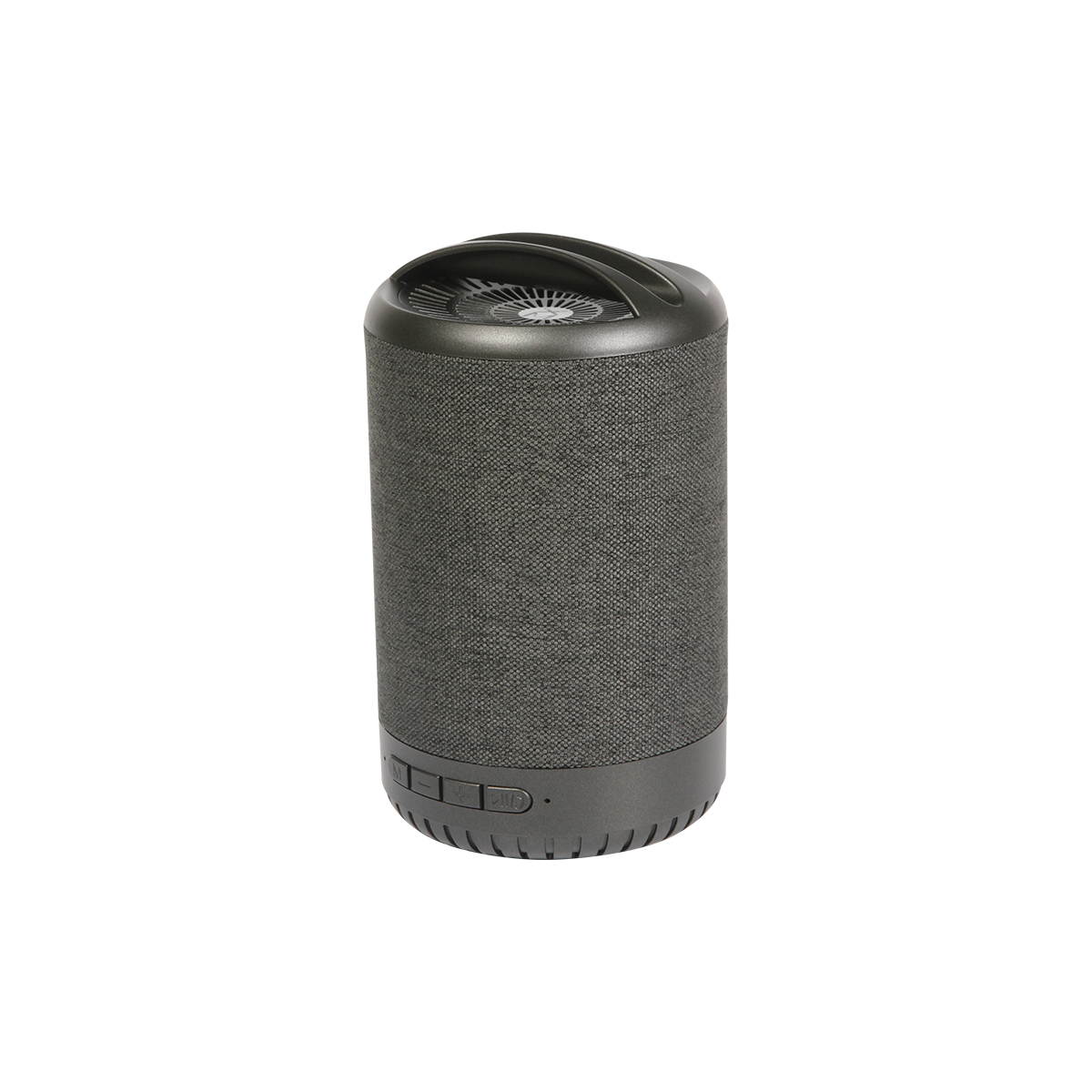 Bocina Baratti. - Bocina con conexión de sonido sin cables, radio FM, entrada para tarjeta TF y memoria USB, fabricada en plástico ABS con cubierta de tela y soporte para celular en la parte superior. En la parte inferior se encuentran 4 botones para manipular la musica, carga a través de cable USB (incluido). Incluye caja de cartón individual.