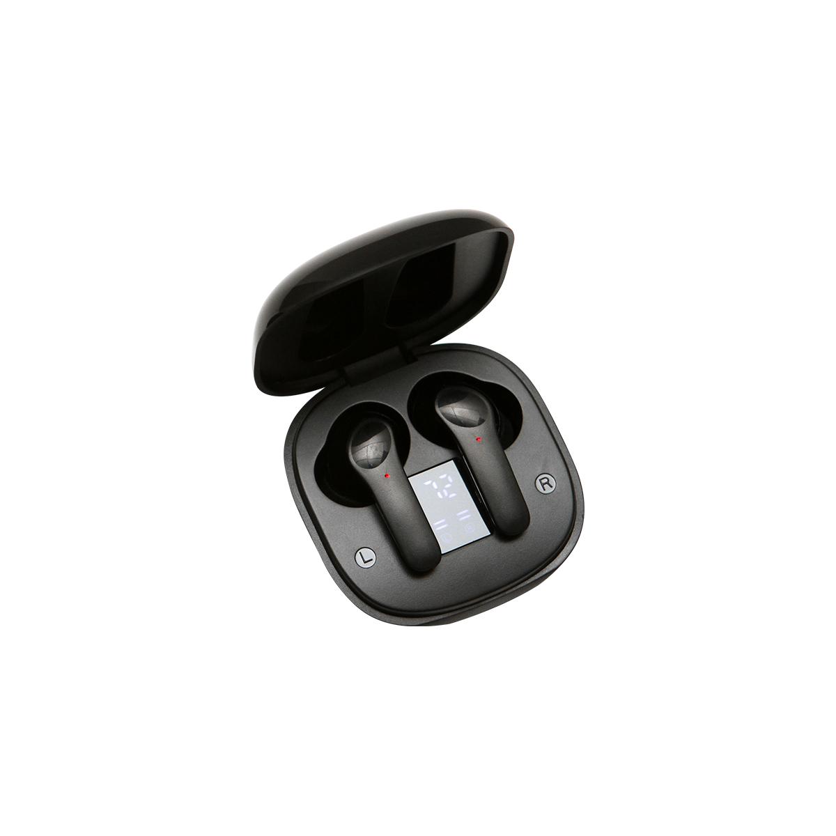 Audífonos Barka. - Audífonos con conexión de sonido sin cables, cuenta con pantalla para indicar nivel de carga, función touch y puerto de carga tipo C. Incluye estuche de carga.