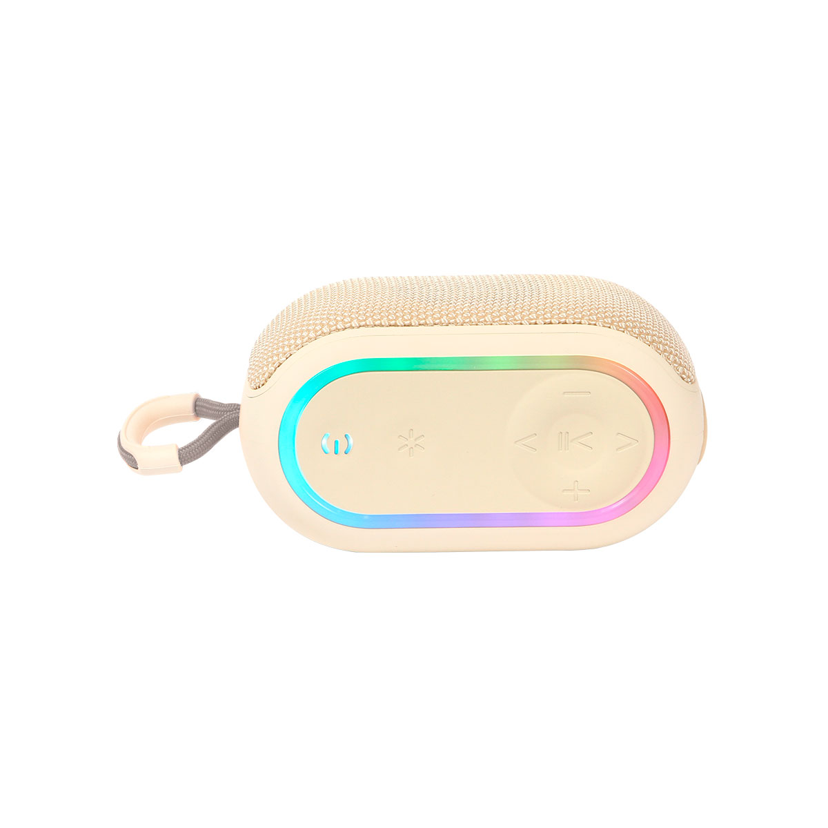Bocina Camberley. - Bocina con conexión inalámbrica con radio FM. Cuenta con efectos de luces de colores, tiempo de reproducción de hasta 6 horas continuas a volumen medio, con un tiempo de carga de 2 horas con entrada tipo C, diseño adecuado para un modelo portátil. Cuenta con una entrada auxiliar, USB, TWS, tarjeta micro SD, FM, recepción de llamadas y asistente de voz. Su alcance de funcionamiento inalámbrico es de hasta 10 metros sin obstáculos. Cuenta con tecnología TWS, la cual permite emparejar dos dispositivos del mismo modelo, lo que significa que puede transmitir el canal izquierdo y el canal derecho por separado en cada dispositivo.