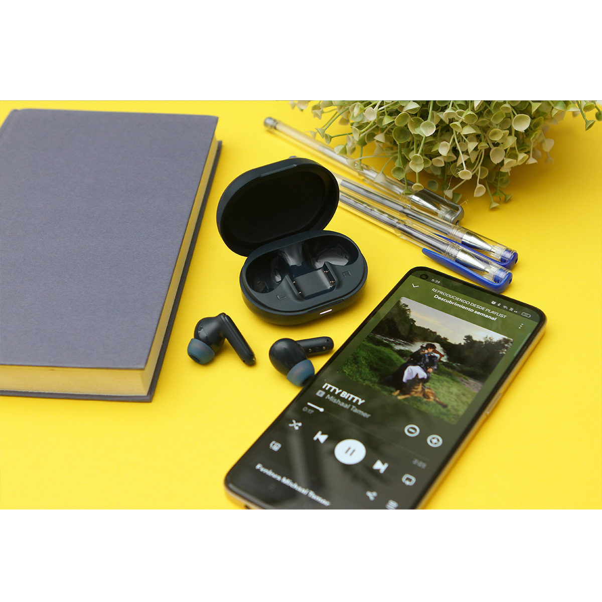 Audífonos Watford. - Audífonos inalámbricos con estuche, gracias a su diseño práctico y ligero los hace perfectos para llevarlos a todos lados. Cuenta con un alcance inalámbrico de 10 metros sin obstáculos. Con tiempo de reproducción de siete horas (60% Vol.), tiempo de conversación de seis horas en volúmen medio, su tiempo de carga es de aproximadamente 1.5 horas por un puerto tipo C.